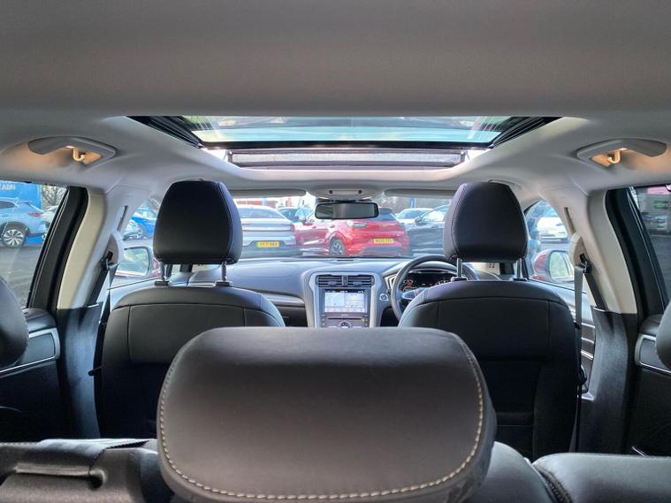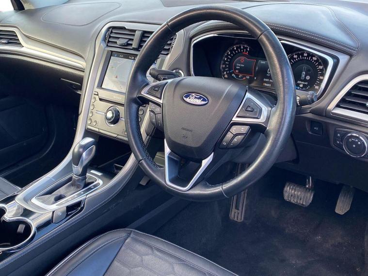 Ford Mondeo Vignale 2.0 TDCi 210 | The Ultimate Executive Suite Experience luxury that rivals the premium German brands without the premium price tag. This Ford Mondeo Vignale is the pinnacle of the Mondeo range, combining effortless power with a hand-finished interior and a specification list that leaves nothing to be desired. Vehicle Overview Model: Ford Mondeo Vignale 2.0 TDCi Bi-Turbo (210 PS) Transmission: Powershift Automatic (Smooth & Responsive) Mileage: 65, 074 Miles Body Style: 5-Door Hatchback Engine: 2.0L Bi-Turbo Diesel (The high-performance 210bhp variant) The Vignale Difference: Key Features This isn't just a Ford; it’s a Vignale. That means exclusive styling, superior soundproofing, and premium materials throughout. Panoramic Glass Roof: Floods the cabin with natural light, creating an airy, high-end atmosphere for all passengers. Blind Spot Information System (BLIS): Drive with total confidence thanks to radar sensors that alert you to vehicles you can't see. Power Tailgate: Effortless access to the expansive boot—perfect for when your hands are full. Premium Leather Interior: Hand-stitched, quilted tuxedo leather seats that are as comfortable as they are stunning. Bi-Turbo Performance: The 210 PS engine offers effortless overtaking power and refined motorway cruising. Why Choose This Car? "The Vignale is designed for those who want executive luxury and 'stealth' prestige. It’s whisper-quiet on the road thanks to Active Noise Cancellation technology." Exceptional Condition: Meticulously maintained with 65k miles on the clock. High-Tech Cabin: Includes Ford SYNC 3 touchscreen, Navigation, and a premium Sony audio system. Safety First: Equipped with Lane Keeping Aid, Traffic Sign Recognition, and a Rear-View Camera.