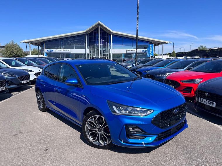 ***DELIVERY MILEAGE CAR / AVAILABLE TO BUY NOW***18" DIAMOND CUT ALLOYS, FULL ST LINE SPORTS STYLING BODY KIT WITH REAR SPOILER & PRIVACY GLASS, FRONT & REAR PARK ASSIST, SYNC 4 13.2" LARGE TOUCH SCREEN ENTERTAINMENT WITH SATELLITE NAVIGATION & DAB RADIO, DIGITAL COCKPIT, COMPATIBLE WITH APPLE CAR PLAY & ANDROID AUTO, SPORTS FRONT SEATS WITH FLAT BOTTOM MULTI FUNCTION STEERING WHEEL & STAINLESS STEEL RACE PEDALS, HEATED FRONT SEATS & HEATED STEERING WHEEL, WIRELESS CHARGING PAD, B&O PLAYER, BLUETOOTH WITH VOICE COMMAND, CLIMATE CONTROLLED AIR CONDITIONING, QUICK CLEAR HEATED FRONT WINDSCREEN FOR THOSE FROSTY MORNINGS AND SO MUCH MORE . We're absolutely delighted to offer this stunning latest shape Focus ST Line X as part of our Approved Used stock. This top of the range Focus with delivery miles is presented in stunning DESERT ISLAND BLUE metallic colour with contrasting sports cloth trim. We believe this excellent value Focus is a pure joy to drive with effective hybrid technology delivering smooth & efficient power (155 BHP) on every surface. This car needs to be viewed and driven to be truly appreciated so why wait, call now to enquire***BALANCE OF FORD WARRANTY UNTIL MARCH 2029 WITH AN OPTION TO EXTEND***Lookers Ford Sheffield (S4 7UQ) ARE A FORD APPROVED RETAILER. WE OFFER COMPETITIVE FINANCE RATES AND ALL OUR VEHICLES ARE THOROUGHLY INSPECTED & HPI CLEAR. AS PART OF THE LOOKERS LIMITED GROUP, WE HAVE ACCESS TO OVER 40 DIFFERENT BRANDS, SO WE ARE BEST PLACED TO FIND THE CORRECT VALUE FOR YOUR PART EXCHANGE. BUY WITH CONFIDENCE FROM A COMPANY ESTABLISHED IN 1908. LOOKERS A GOOD DEAL, BETTER** PLEASE CALL NOW FOR MORE INFORMATION & A PERSONALISED VIDEO SHOWING YOU YOUR NEXT CAR t: 01143389217 Unless otherwise stated, vehicles may have previously been used for business or hire purposes and so may have had multiple users. Where we hold documents relating to vehicle history, these are available for inspection on request.