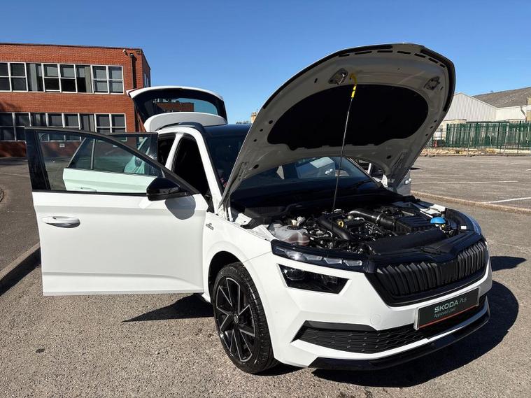 Introducing the stunning 2023 Skoda Kamiq 1.0 TSI Monte Carlo SUV, now available at Lookers Skoda Guildford. This exceptional vehicle, finished in a sleek white with a striking black contrast roof, is designed to impress with its modern aesthetics and advanced features. With 1 previous owner and a mileage of just 20, 924 miles, this retail vehicle is in excellent condition and ready for its next adventure. The Kamiq is packed with features that enhance both comfort and safety. Enjoy the convenience of climate control, heated seats, and a panoramic sunroof, perfect for those sunny days. The vehicle also boasts LED headlights, a rear-facing camera, and front and rear parking sensors, ensuring a smooth and secure driving experience. With compatibility for Apple CarPlay and Android Auto, you can easily stay connected on the go. Additional highlights include dynamic light assist, Bluetooth music streaming, and Isofix mounting points for child seats. At Lookers, we pride ourselves on our commitment to customer satisfaction. With over 100 years of experience in the automotive industry, we offer a full range of aftersales services, including vehicle servicing and MOT facilities. Plus, this Skoda comes with a 12-month warranty for your peace of mind. Don’t miss out on this fantastic opportunity to own a versatile and stylish SUV. Contact us today to arrange a test drive!