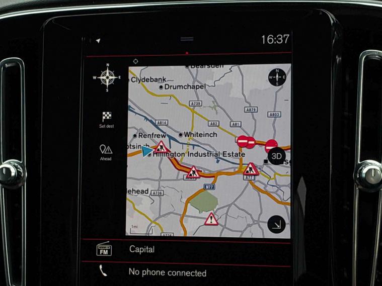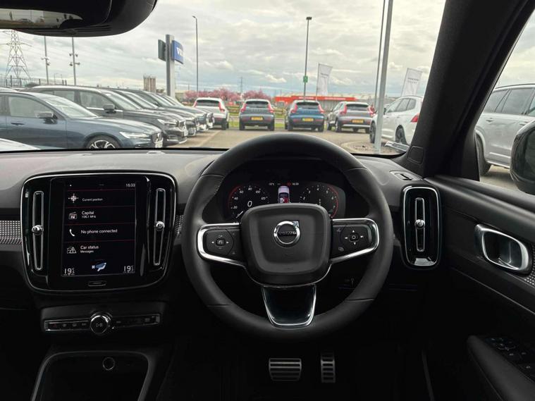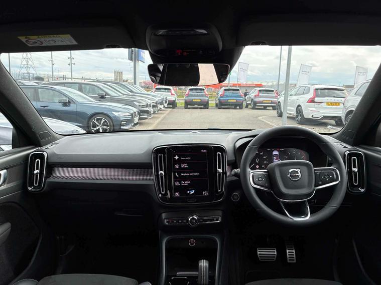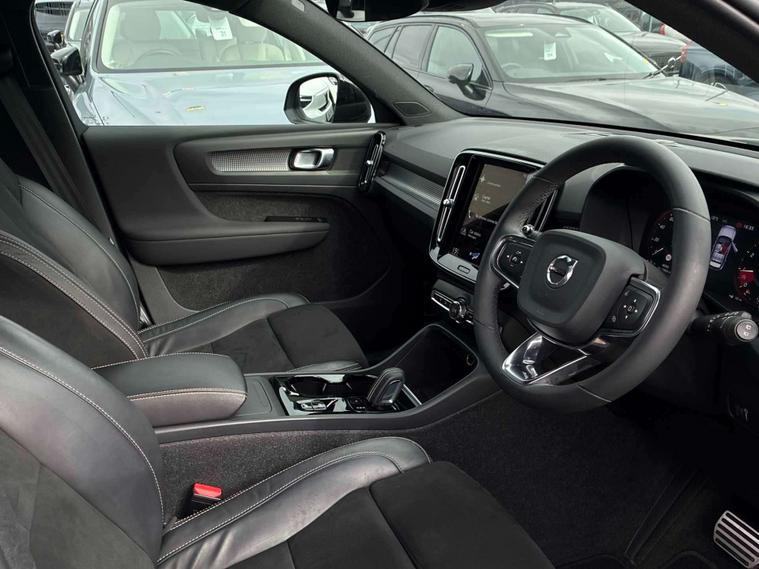 Experience premium style and performance with this Volvo XC40 R-Design T3 Auto, finished in striking Onyx Black with a contrasting Black Stone roof. This compact SUV delivers a smooth automatic drive with a sporty chassis, eye-catching 18-inch diamond cut alloy wheels and R-Design details throughout. Inside, you’ll find a high-quality cabin featuring leather-nubuck sports seats, a 12.3-inch digital driver display and a 9-inch portrait touchscreen with Sensus Navigation. Comfort is enhanced with two-zone climate control, heated auto-fold mirrors, power tailgate and rear park assist, while advanced safety systems such as City Safety, Lane Keeping Aid and Cruise Control provide confidence on every journey. Practicality is ensured with split-folding rear seats, underfloor storage and dark tinted rear windows. This vehicle is available from Lookers Volvo Glasgow, conveniently located in Hillington Industrial Park, G52 4FA. All our cars are Volvo SELEKT Approved and rigorously inspected by trained Volvo technicians. Volvo is renowned for safety, design and reliability, making the XC40 a fantastic choice. To arrange a test drive or for more information, contact us on 01417602192.