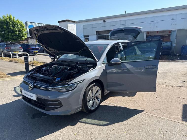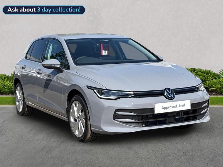 Volkswagen Golf 1.5 eTSI Match DSG (150 PS) – 2026 Registration: LC26 ENO | Mileage: 1, 500 | Moonstone Grey | Demonstrator | Euro 6 A nearly-new Volkswagen Golf Match finished in Moonstone Grey with a Soul-Black interior. As a demonstrator with just 1, 500 miles, this example offers exceptional condition, the latest technology and a refined mild-hybrid 1.5 eTSI engine paired with a smooth DSG gearbox. Key Details 1.5 eTSI petrol mild-hybrid engine (150 PS) DSG automatic transmission 1, 500 miles Moonstone Grey solid paint Soul-Black interior Demonstrator model Euro 6 compliant Optional Equipment Driver Assistance Area View including rear-view camera system Standard Equipment Highlights Exterior Rear tinted glass (approx. 65% tint from B-pillar backwards) Driver Assistance & Safety Adaptive Cruise Control (ACC) with speed limiter Front Assist with autonomous emergency braking Pedestrian & cyclist monitoring Lane Assist (via multifunction front-facing camera) High Beam Assist Park Assist with front & rear parking sensors Alarm with interior protection Keyless Access with SAFELOCK Wheels & Tyres 17" Nottingham alloy wheels 225/45 R17 XL tyres Comfort & Convenience Leather-trimmed multifunction steering wheel Leather gearshift handle Rain sensor Infotainment & Connectivity Discover Navigation system 12.9" infotainment display IDA voice assistant with ChatGPT integration eSIM for online connectivity 6-speaker audio system Navigation system with media package Condition As a demonstrator, this Golf is presented in excellent condition both inside and out. The interior shows minimal wear, and the exterior in Moonstone Grey is in superb order. Drives as expected for a nearly-new vehicle with smooth DSG shifts and refined hybrid-assisted performance. Volkswagen Approved Used Benefits (2026) Included as standard with an Approved Used Volkswagen: 1 Year Volkswagen Warranty 1 Year Roadside Assistance When financed with Solutions PCP from Volkswagen Financial Services: Up to 2 Services for only £99* 1 Year Volkswagen Warranty† 1 Year Roadside Assistance† £250 Deposit Contribution* (Applicable only to vehicles under 3 years old) *Servicing available on vehicles up to 8 years old. Covers two consecutive services. † Warranty and Roadside Assistance valid on vehicles under 8 years old and under 100, 000 miles at activation. Finance subject to status. Terms and conditions apply. Summary A nearly-new Golf Match with an outstanding specification including Area View, Discover Navigation, 12.9" infotainment display, Nottingham alloys, Park Assist and the latest driver-assistance systems. A refined, efficient and highly-equipped hatchback, supported by Volkswagen Approved Used benefits.