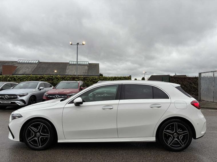 Combining style with smart efficiency, this Mercedes-Benz A-Class A200h MHEV AMG Line (Executive) Hatchback delivers sporty hybrid performance alongside premium Mercedes-Benz refinement. Powered by a responsive 1.3-litre petrol engine supported by mild-hybrid technology, it produces an impressive 177?PS through the smooth and efficient 7G-DCT automatic gearbox. The result is confident acceleration, excellent fuel efficiency and a refined, composed drive that’s ideal for both city commuting and longer motorway journeys. Euro?6 compliance with start/stop technology ensures clean, economical motoring without sacrificing performance. Inside, the AMG Line (Executive) interior offers a modern, high-quality environment that feels both sporty and sophisticated. Supportive sports seats, premium materials and a sleek digital cockpit create a driver-focused cabin, while the Executive package enhances everyday usability with upgraded infotainment, improved connectivity and practical comfort features. Excellent visibility, intuitive controls and a well-designed layout ensure every journey is relaxed and enjoyable for both driver and passengers. The exterior design reflects the dynamic character of the A-Class, enhanced by bold AMG Line styling. Sculpted body lines, striking alloy wheels and sleek LED lighting give this hatchback a confident and contemporary road presence. Compact, efficient and superbly equipped, the A200h MHEV AMG Line (Executive) offers the perfect balance of performance, practicality and premium appeal. Please call Mercedes-Benz of Stoke on 01782492848 to reserve this vehicle or request a personalised walk-around video!