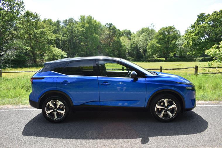 This is a 2021 Nissan Qashqai DIG-T N-Connecta, a car with a 1.3L petrol hybrid engine. It's Euro 6 compliant and has only had one owner. With low mileage of just 21293 miles and a full dealership service history, this Qashqai is well-maintained and ready for its next adventure. The N-Connecta trim includes an Intelligent Around View Monitor, complete with parking assistance and a 360-degree camera, making parking a breeze. It also features Blind Spot Warning with Blind Spot Assistance, ensuring safer lane changes. The intelligent key, including keyless entry, adds convenience to your daily routine, while wireless Apple CarPlay keeps you connected on the go. The dusk sensor, with automatic headlights, provides enhanced visibility in low-light conditions.One of the standout features of this Qashqai is its large boot space, offering ample room for luggage, shopping, or anything else you need to transport. This makes it more practical than similar vehicles in its class.Finished in Blue with black roof and blackmirror casings, front and rear parking sensors, privacy glass, chrome roof rails, electric folding mirrors, 18'' alloy wheels, 6 speed manual, LDW (lane departure warning), crusie control, keyless start, Nissan Connect, reverse camera with guidlines, sat nav, air con, Buetooth, HPI, finance available with with this vehicle....for further informtion please contact us on 01483334205.