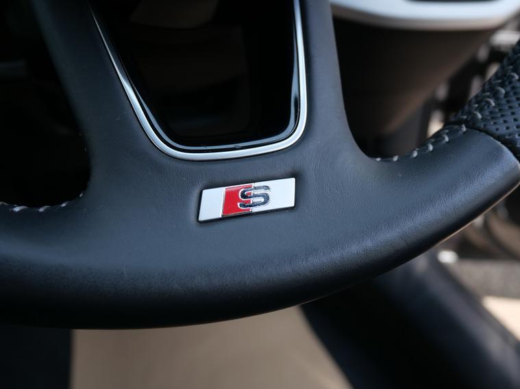 - high multi-function 3-spoke leather steering wheel with grips in perforated leather and s badging