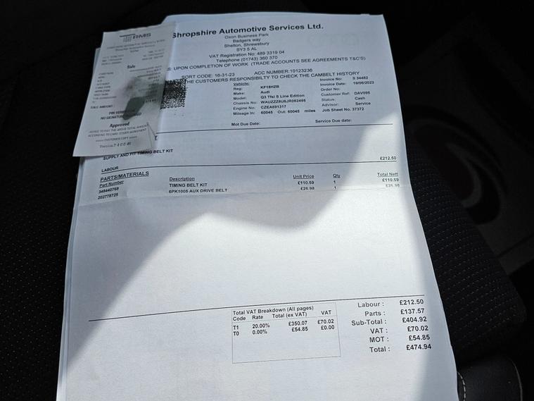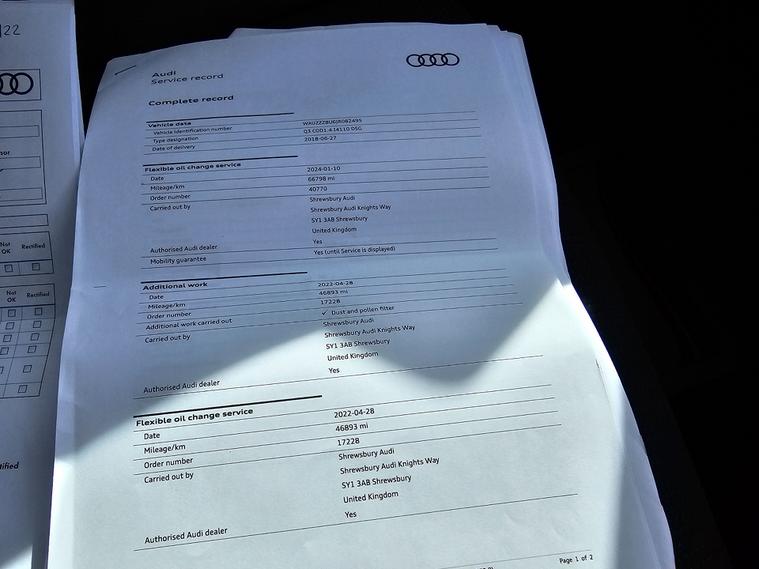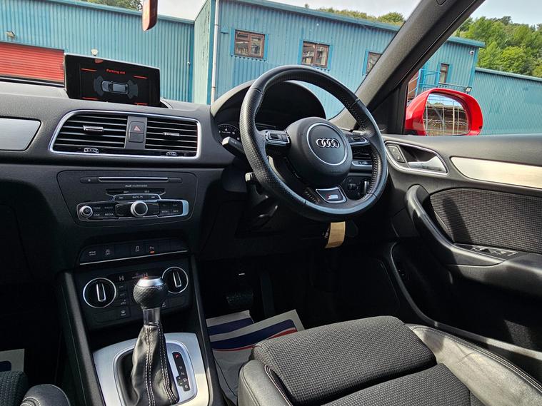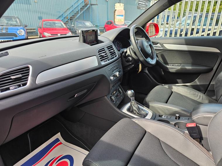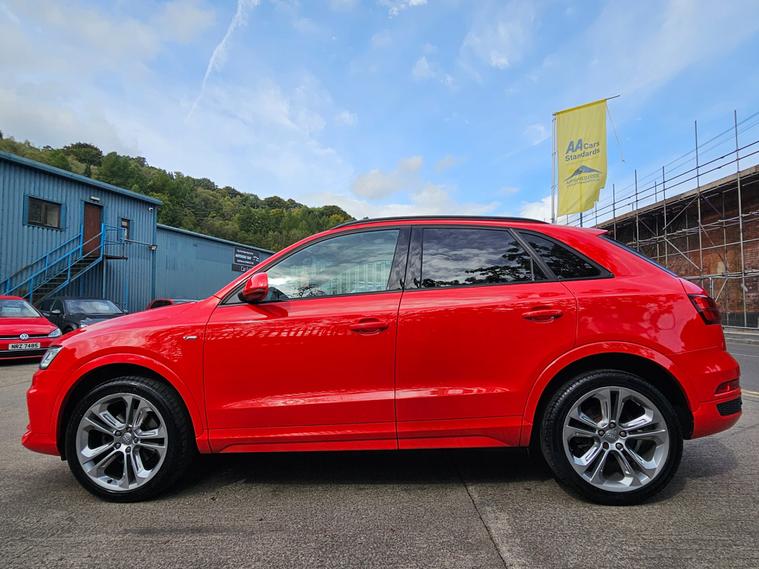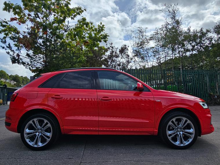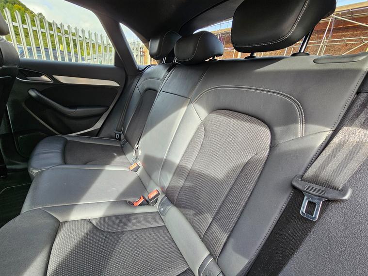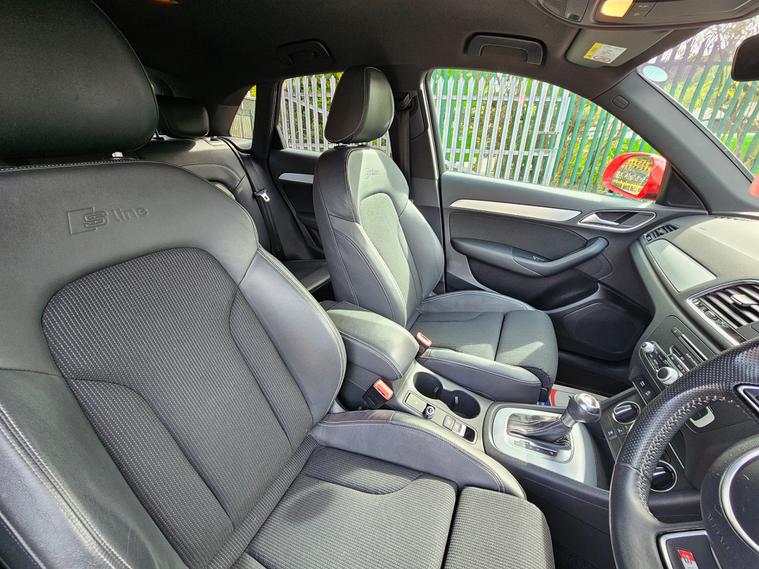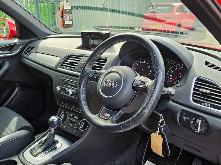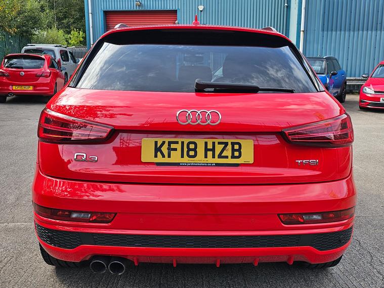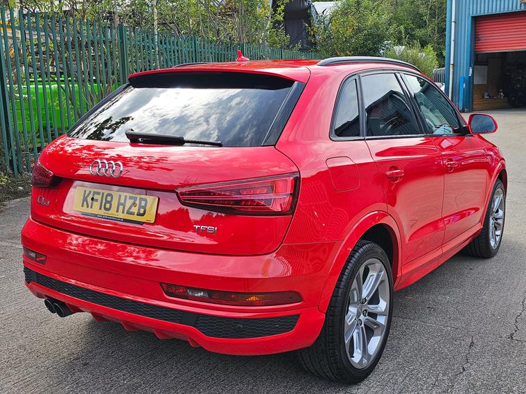 This 2018 Audi Q3 1.4 TFSI CoD S line Edition SUV with 82293 miles on the clock is the perfect family vehicle, with 5 seats and 5 doors. Powered by a petrol engine and equipped with S Tronic Euro 6 (s/s) technology, this car is ULEZ compliant and has an MOT that expires on 25/08/2026. The sleek design features 18in Alloy Wheels, Aluminium Roof Rails, and Aluminium Window Trims, while also ensuring security with Anti Theft Locking Wheel Bolts and Body Coloured Door Mirrors. With its spacious interior, powerful engine, and stylish exterior, this SUV is a top choice for those seeking comfort and reliability on the dealer's website delivery available.Part exchange welcome.AA extended warranty partner.AA standards approved dealership.Trading standards approved dealership.Autotrader highly rated dealership.