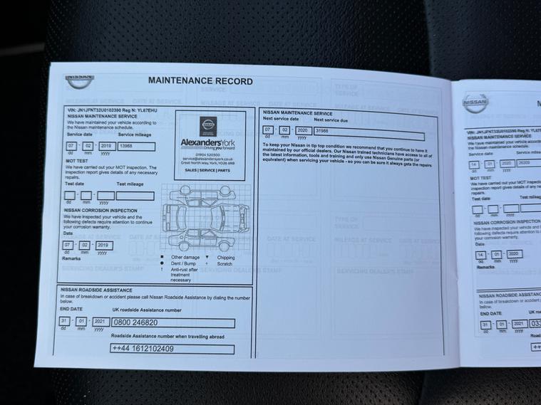 This 2018 Nissan X-Trail 2.0 dCi Tekna SUV is a reliable diesel vehicle with only 73045 miles on the clock, offering ample space with 5 seats and 5 doors, making it perfect for family adventures. The MOT is valid until 30/09/2026 and its ULEZ compliant status ensures worry-free city driving. With its Euro 6 (s/s) engine producing 177 ps, this SUV has the power to tackle any terrain, aided by its 4WD capabilities. The exterior features 19-inch alloy wheels, automatic folding mirrors, and a sleek black honeycomb front grille, complemented by chrome side mouldings and body-coloured door mirrors, giving it a sporty yet sophisticated look. Ideal for those seeking a versatile and stylish dealer's website delivery available.Part exchange welcome.AA extended warranty partner.AA standards approved dealership.Trading standards approved dealership.Autotrader highly rated dealership.