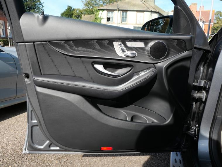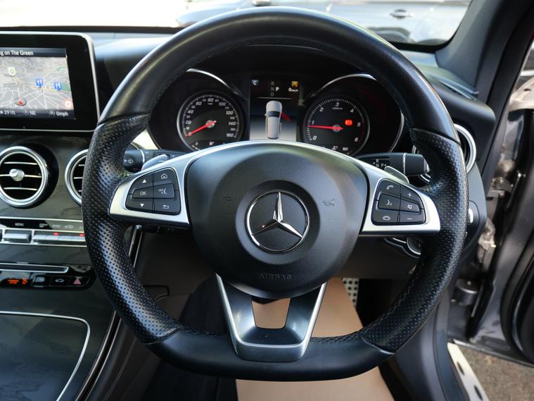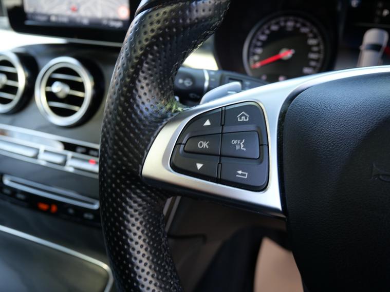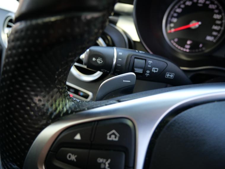 - steering wheel - 3-spoke multi-function amg in black leather with flattened bottom section and chrome inserts and perforated leather in grip area