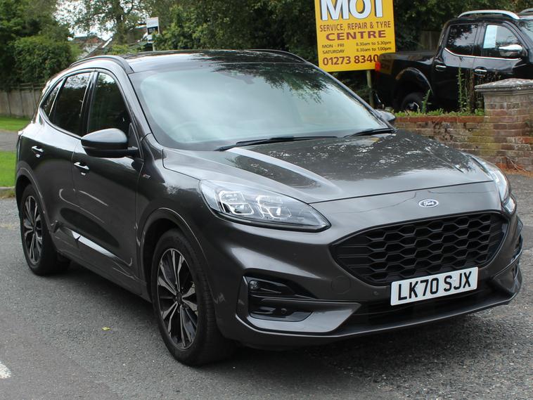 Introducing the 2021 Ford Kuga 1.5 EcoBlue ST-Line X Edition SUV, a stylish and efficient diesel vehicle with only 33100 miles on it. This 5-door, 5-seat SUV is more than just a beautiful ride - it's also ULEZ compliant, making it environmentally friendly. Boasting a Euro 6 (s/s) engine delivering 120 ps, this car features a manual transmission, giving you complete control over your driving experience. With luxurious Magnetic paint and a Partial Sensico - Rapton Cloth interior in Ebony with Red Stitching, this Kuga is as beautiful on the inside as it is on the outside. You'll also enjoy the comfort and convenience of a 10-Way Power Adjustable Drivers Seat, 2nd Row Sliding Seats with 60-40 Split, and an 8-Way Manual Passenger Seat including Lumbar Support and Height Adjust. Don't miss your chance to own this impressive and fully-loaded Ford Kuga., OPEN 7 DAYS A WEEK - A SELECTION OF UP TO 200 CARS AND VANS AVAILABLE. Click on dealer 'VISIT WEBSITE' link for many more large photographs of this car. We are a West Sussex Trading Standards Approved 'Buy with Confidence Dealership'.