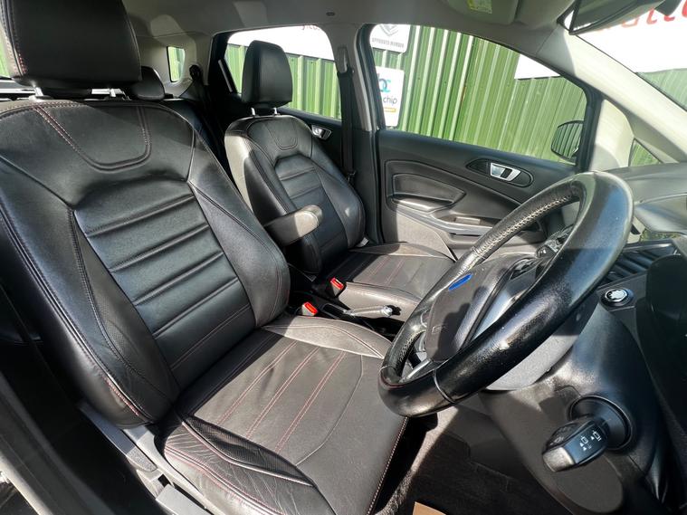 This 2015 Ford Ecosport 1.0 Titanium SUV with 67404 miles is a reliable and efficient choice for those in need of a practical vehicle. This 5-door, 5-seater runs on petrol and is ULEZ compliant, making it an environmentally-friendly option. With an impresive service history comprising of 8 stamps in the service book and Cambelt replacement May2024, this vehicle will also be serviced by ourselves in our own workshop where it will undergo a complete and meticulous mechanical inspection which has the backing of a 3 month BLUECHIP extendable warranty. We must add at this juncture that the majority of our customers tend to extend to the 12 month all mechanical all electrical warranty at the extremely competitive price of just £399+ VAT. Full details can be viewed at dealer's website This SUV will be ready to hit the road with confidence. Its 1.0T EcoBoost engine delivers 125 ps, providing ample power for any journey. The manual transmission and 2WD capability ensure a smooth and controlled driving experience. This Ecosport also comes with 16in Alloy Wheels, Full Leather Interior, Chrome Grille, Electric Windows, Silver Roof Rails, and Door Handle Integrated in Rear Light, adding both style and functionality to the vehicle. Whether for city commuting or outdoor adventures, this Ford Ecosport offers a comfortable and versatile driving experience for all. Offered for sale by Stratton car Company of Sussex A Family Run Business.