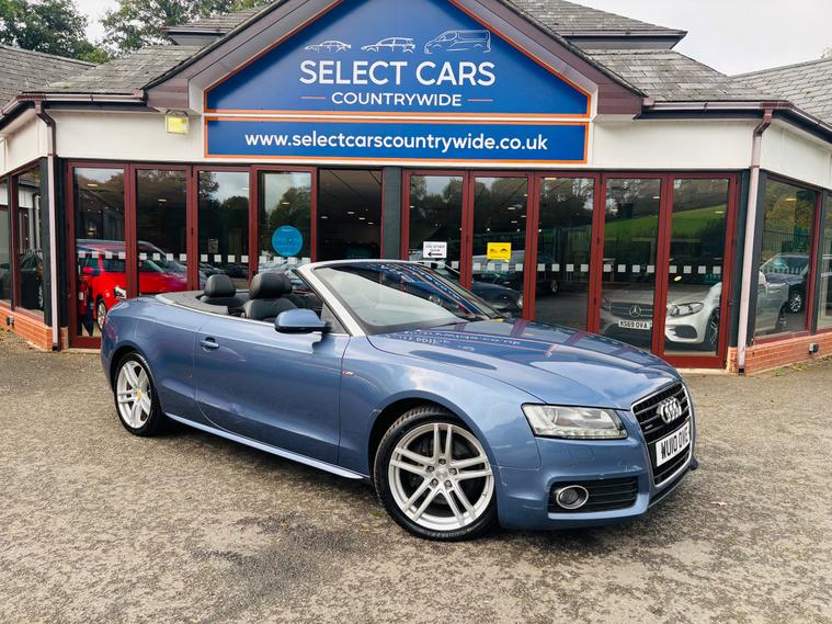 This 2010 British Audi A5 Cabriolet has seen 109347 miles on the road and is a stylish convertible powered by a petrol engine, making it a great choice for those who love to feel the wind in their hair. With a fresh MOT expiring on sale, this 2-door car offers 4 seats and is ULEZ compliant, ensuring it meets emission standards. The 3.2 FSI V6 S line Convertible 2dr Petrol S Tronic quattro Euro 5 (265 ps) engine provides powerful and smooth performance, and includes features such as 10 speakers, auxiliary input socket, and Concert Radio & CD player with MP3 SD card reader & Aux input socket. With its 18in 10Spoke design Alloy Wheels, this Audi A5 Cabriolet is the perfect option for those who love to turn heads while on the road.,
