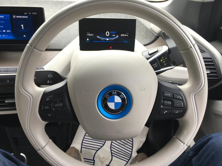 - steering wheel - leather multifunction two spoke - black with unique bmw i blue accent