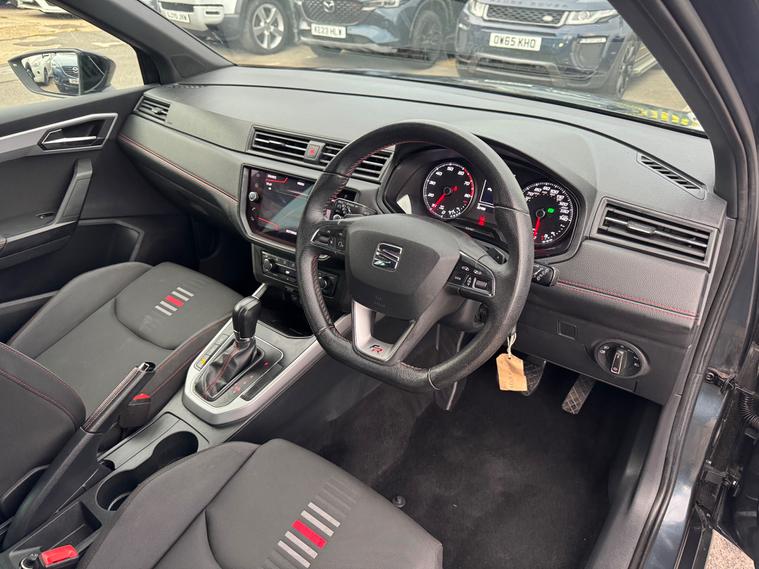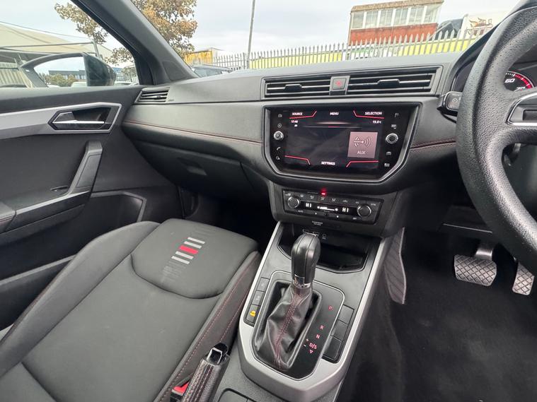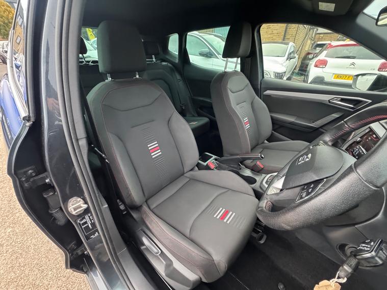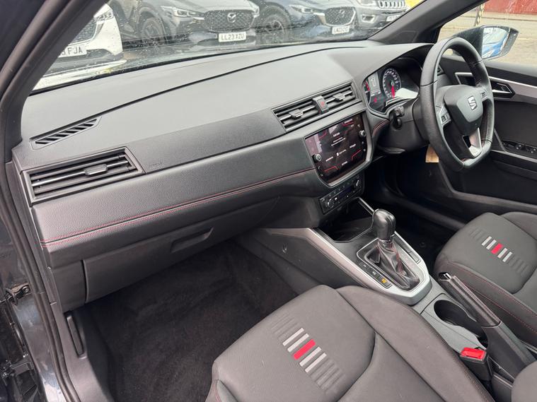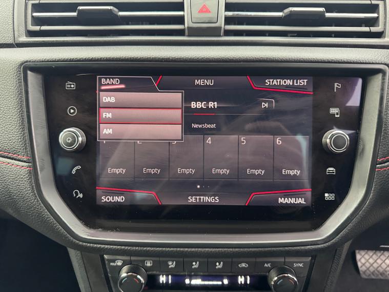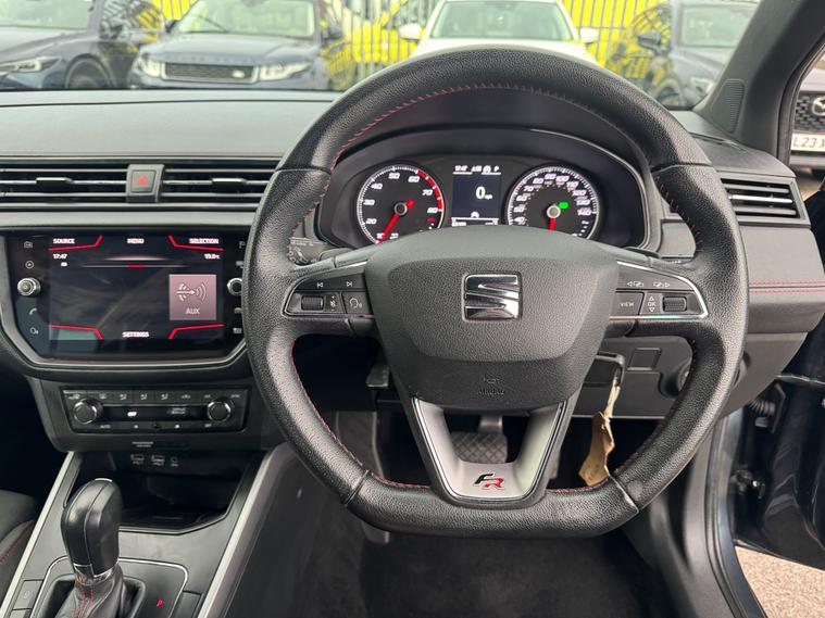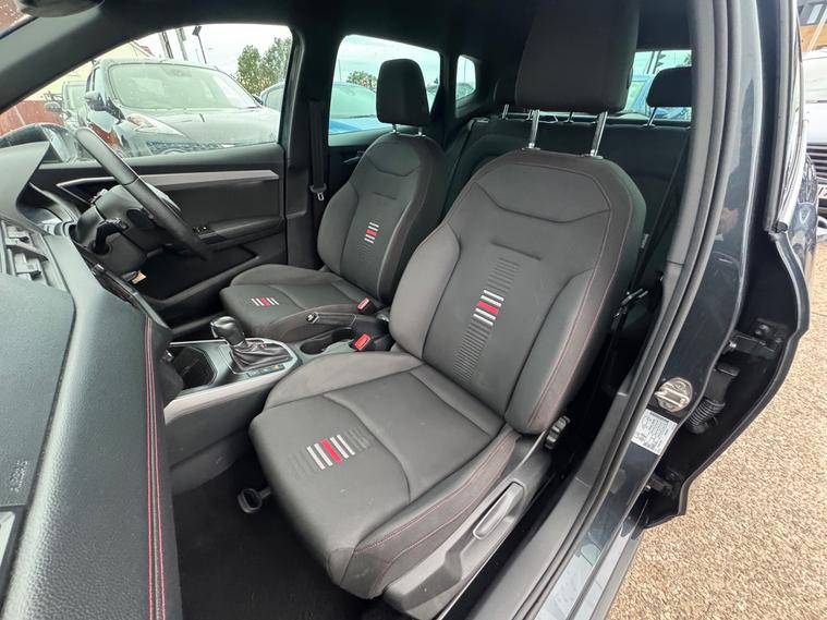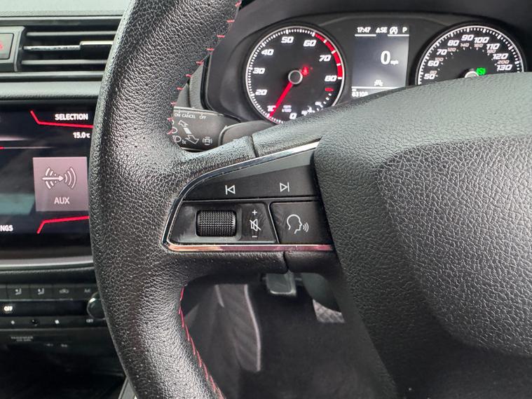 - perforated leather flat-bottomed steering wheel with red stitching and fr logo with leather gear knob