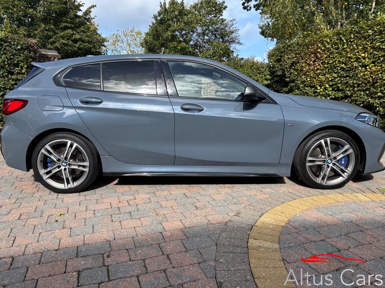 Stunning 2021 BMW M135i Hatchback 5dr Petrol Auto xDrive Euro 6 (s/s) (306 ps) Storm Bay with full black Dakota leather with grey piping, Only 34686 with Full BMW Main Dealer service history. Excellent specification including Comfort Pack II, Electrically adjusted drivers seat with memory function, Sun protection glazing, Automatic Tailgate, Comfort access system, Heated steering wheel, 18'' Diamond cut double spoke alloys. DAB Radio, Heated Front Seats, Parking Sensors, Air Conditioning, LED Headlights, Sports Seats, Park Distance Control front and rear, Cruise Control, Live Cockpit Professional, Electric Folding Door Mirrors, M Sport Exterior Styling, M Sport Spoiler, High-gloss Shadowline Exterior Trim, OAAS Prep High-beam Assist, M Sport Seat Belts, Illuminated Boston Interior Trim, Extended Storage Contents, Anthracite Headlining, M Sport Suspension, M Sport Brakes with Blue Calipers, Multifunction Controls on Steering Wheel.We are a family business and pride ourselves on supplying top quality used cars. This BMW will come with 6 months comprehensive WSG Platinum warranty & roadside assistance plus a full Motor Check provenance report for your peace of mind. Optional 12 months AA cover and 5 day driveaway insurance also available. P/ex welcome