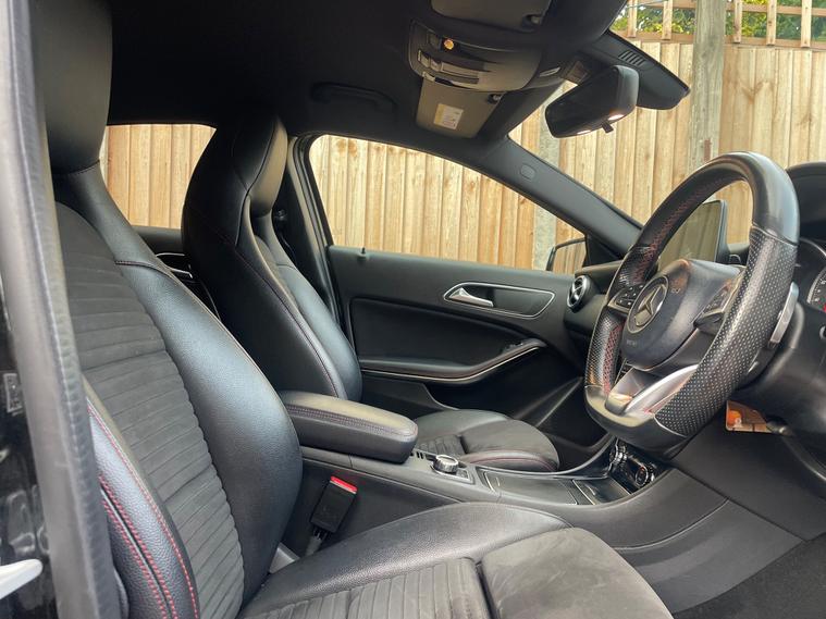 This 2017 Mercedes-Benz A Class 1.6 A160 AMG Line (Executive) Hatchback with a 7G-DCT Euro 6 petrol engine and 98700 miles on the clock is a stylish and practical choice for those in need of a reliable hatchback. With 5 doors and 5 seats, it offers ample space for family and friends, and is ULEZ compliant, making it suitable for city driving. Its MOT is valid until 24/11/2025, giving you peace of mind for the years ahead. The car boasts 18in Alloy Wheels, AMG Bodystyling, chrome Beltline Strips, and body-coloured Side Skirts, giving it a sleek and sporty look. With brake calipers featuring Mercedes-Benz lettering on the front, this car is a true symbol of luxury and performance. Whether you're cruising in the city or hitting the open road, this Mercedes-Benz A Class has everything you need and more.