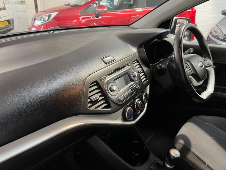 For sale is a 2014 Kia Picanto 1.0 VR7 Hatchback with only 14000 miles on the clock. This sleek and efficient hatchback runs on petrol and boasts a MOT that expires on 06/10/2026, making it a reliable choice for the long haul. Great service history to verify the mileage with 8 stamps in the book all with main dealers. We will service the car prior to handover also. With 5 seats and 5 doors, this ULEZ compliant vehicle offers plenty of space for both passengers and cargo. It comes equipped with desirable features such as a 12V power socket, a 4-speaker system, Bluetooth with music streaming and voice recognition, as well as an RDS radio with CD and MP3 capabilities. With Euro 5 emission standards and 68 bhp under the hood, this Picanto is ready to hit the road in style and comfort. Recently part exchanged at a Ford main dealer for a new car, we purchased it from them and it drove without fault when collected by ourselves. No smells inside of tobacco or pets and comes with 2 keys and has had 1 private owner since 2015.