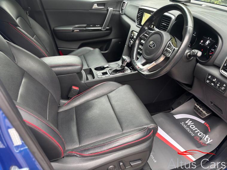 2019 Kia Sportage 1.6 T-GDi GT-Line S SUV 174 bhp, DCT AWD Euro 6 (s/s), One owner from new, Full KIA service history with only 29686 miles, New MOT until 29/09/2026, Remains of KIA 7 year warranty until September 2026, Panoramic electric opening sunroof, Carplay/Android Auto, Heated seats & steering wheel, Full black perforated leather piped red, Flat bottom multi-function steering wheel, Smart cruise control, Surround camera and Parking sensors, Auto hold electric hand brake, Automatic lights, Powered tailgate, JBL sound system, Drive mode select, 10-Way Drivers and 8-Way Passengers Power Adjustable seats, 60-40 Split Folding Rear Seats, All-Round Height Adjustable Headrests, and Aluminium Pedals, We are a family business and pride ourselves on supplying top quality used cars. This Kia Sportage comes with a full Motor Check provenance report for your peace of mind. Optional 12 months AA cover and 5 day driveaway insurance also available. P/ex welcome