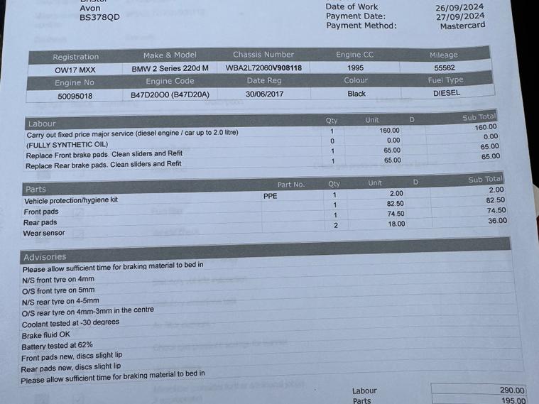 This stylish 2017 BMW 2 Series 2.0 220d M Sport Convertible with just 59606 miles on the clock is the perfect choice for those who enjoy the open road. This diesel-powered convertible boasts a sleek Black Sapphire exterior and comes equipped with the M Sport Plus Package, M Sport Braking System, and a Windscreen with Grey Shade Band for added style and performance. With Enhanced Bluetooth Telephone Preparation, USB Audio Interface, and Voice Control, staying connected on the go is a breeze. This car comfortably seats 4 with 2 doors and is ULEZ compliant, making it an ideal choice for city driving. This BMW 2 Series is ready to hit the road for your next dealer's website delivery available.Part exchange welcome.AA extended warranty partner.AA standards approved dealership.Trading standards approved dealership.Autotrader highly rated dealership.