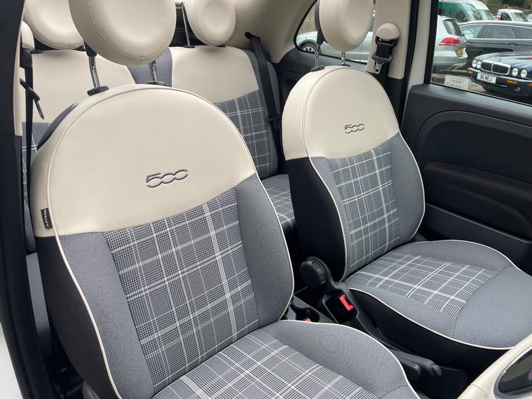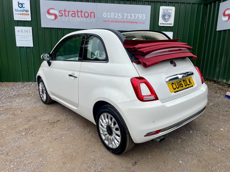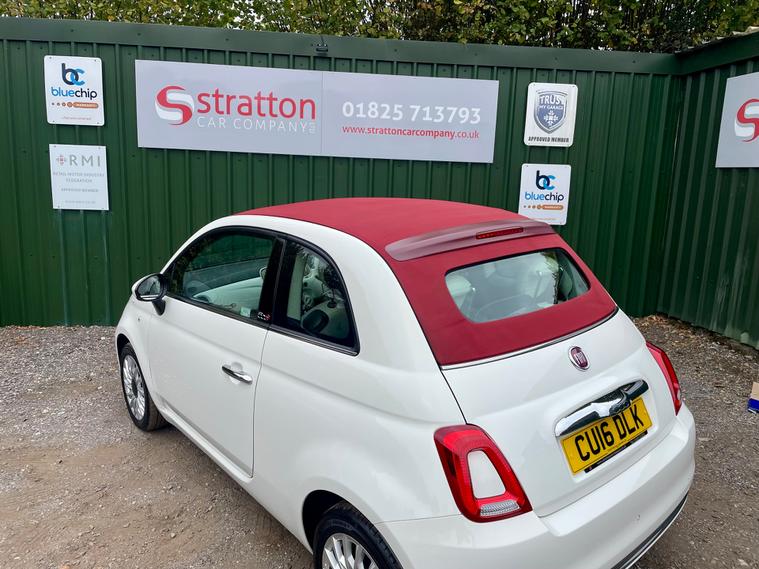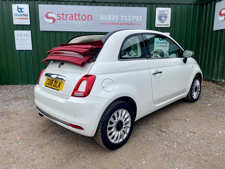 This 2016 Fiat 500c 1.2 ECO Lounge Convertible is a stylish and fuel-efficient car with only 44698 miles on the clock. With a petrol engine and manual transmission, it is perfect for those who love the open road. The MOT is valid until 29/05/2026, giving you peace of mind for years to come. The convertible top allows you to enjoy the sunshine while cruising in style. The exterior is finished in Bossa Nova White with a vibrant red roof, while the interior features a stylish cloth upholstery in Black-Light Grey-Ivory with Ivory Ambience. Some of the modern features included in this vehicle are a 5-inch touchscreen radio with AUX, USB, DAB, and Bluetooth connectivity, as well as a space-saver spare wheel and a 12V socket in the front. This Fiat 500c combines fun, practicality, and European charm in one affordable package.This vehicle will undergo a complete and meticulous mechanical inspection which has the backing of a 3 month BLUECHIP extendable warranty. We must add at this juncture that the majority of our customers tend to extend to the 12 month all mechanical all electrical warranty at the extremely competitive knocked down price of just £399+ VAT. Full details can be viewed at dealer's website vehicle is in stunning condition which is a real credit to its former owner. Offered for sale by Stratton car Company of Sussex A Family Run Business.