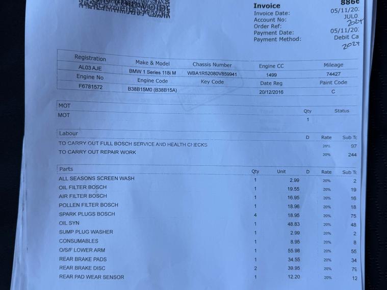 For sale is a 2016 BMW 1 Series 1.5 118i M Sport Hatchback with only 83231 miles on the clock. This stylish hatchback runs on petrol and comes with a manual transmission. The MOT is valid until 20/11/2026, and it is ULEZ compliant, making it ideal for city driving. The car boasts 5 seats and 5 doors, providing ample space and convenience for passengers. It is equipped with 18in Alloy Wheels, Enhanced Bluetooth Telephone Preparation, and Interior Trim in Brushed Aluminium with Black High-Gloss Finisher, making for a comfortable and connected driving experience. The exterior is finished in Melbourne Red, adding a touch of sophistication to the sleek design. With its Euro 6 engine, this BMW 1 Series offers both power and efficiency, making it a desirable choice for anyone in the market for a reliable and stylish dealer's website delivery available.Part exchange welcome.AA extended warranty partner.AA standards approved dealership.Trading standards approved dealership.Autotrader highly rated dealership.