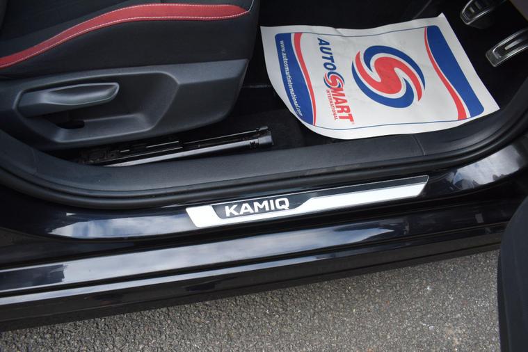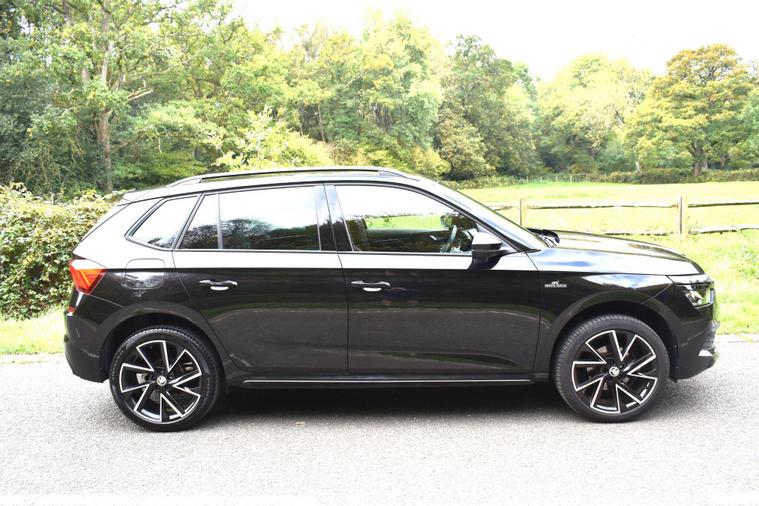 This 2022 Skoda Kamiq TSI Monte Carlo is a superb example, having had only one owner since new. This stylish SUV boasts a 1.0 litre Euro 6 compliant petrol engine, offering an impressive fuel economy of 49 miles per gallon. The Monte Carlo trim level enhances its appeal with a striking black roof and matching roof rails, complemented by a fixed panoramic sunroof that floods the cabin with light. For convenience and safety, it features rear parking sensors and full LED headlights, ensuring excellent visibility. Inside, you'll find manual air conditioning with a pollen filter to keep the cabin comfortable.The Skoda Kamiq TSI Monte Carlo is designed to offer a superior driving experience. Its low CO2 emissions are a key benefit, indicating a more environmentally conscious choice compared to many similar vehicles. The inclusion of towbar preparation adds versatility, making it ready for various needs. This combination of efficient performance, desirable features, and excellent provenance makes this Kamiq a standout option for those seeking a well maintained and practical compact SUV.Finished in Black Magic Pearl with cloth sport seats, one private owner from new, air con, full service history, DAB radio, BLuetooth, 6 speed manual, eco start/stop function, cruise control, panoramic roof, Apple Car Play, 18'' alloy wheels, rear parking sensors, HPI clear, finance available with this vehicle.... for further information please contact us on 01483334205.