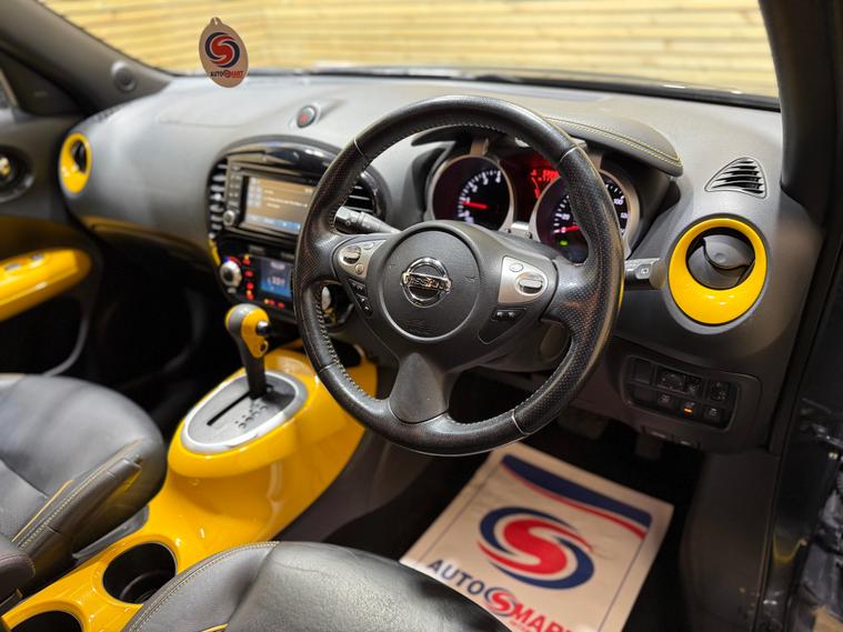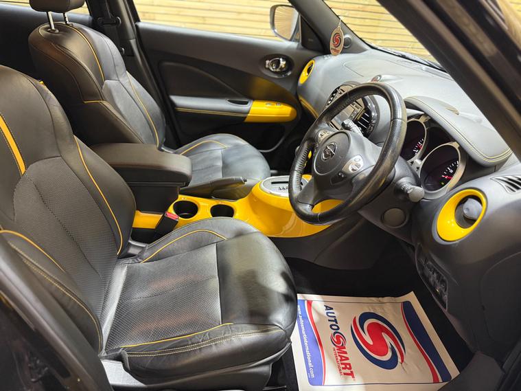 This Nissan Juke 1.6 petrol automatic comes with New Service and MOT , 2 keys Very good spec including Heated Black Leather Trim , Satellite Navigation , Bluetooth Connectivity , 360 cameras , electric folding mirrors , blind spot detection , Factory Tinted Windows , 17'' alloys with excellent tyres Junction 21 Motors Ltd is a family-run business with over 15 years of experience in the motor trade. We are an AA Approved Garage, conveniently located at Rolstone Farm, just half a mile from M5 Junction 21. FCA Registered - working with a wide panel of trusted finance providers Part Exchange Welcome All Viewings by Appointment Only (fees may apply) Opening Hours: Monday - Friday: 9:30am - 6:00pm Saturday: 10:00am - 5:00pm Sunday: Hours vary (please call to confirm) Call us on 01934602947 Visit our website for directions and to browse our latest stock.