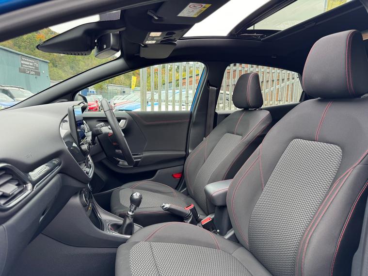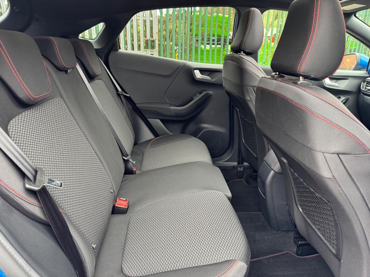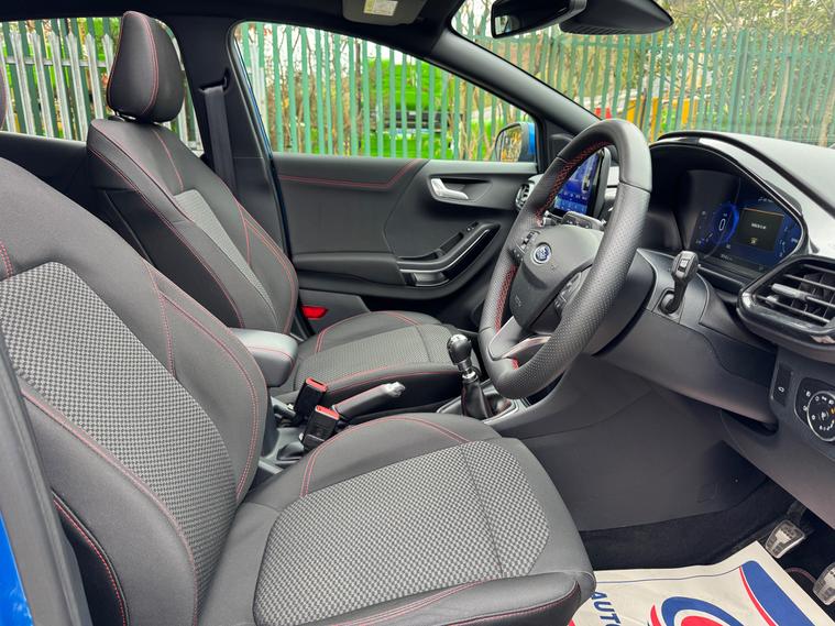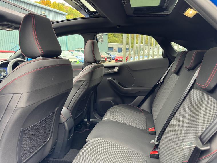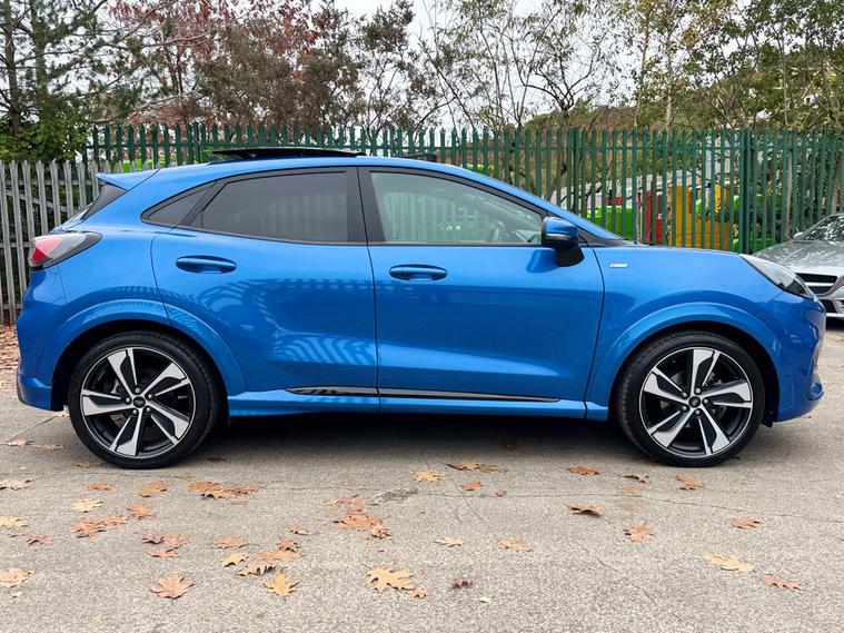 This 2021 Ford Puma has only 39750 miles on the clock and is a stylish SUV perfect for any adventure. Powered by a 1.0T EcoBoost MHEV engine, this petrol manual vehicle is ULEZ compliant and comes with a MOT that expires on 22/04/2026. With 5 seats and 5 doors, there's plenty of room for the whole family, and the Desert Island Blue exterior is sure to turn heads. The 19in Alloy Wheels and Panorama Roof add a touch of luxury, while the Handsfree Power Tailgate makes loading and unloading a breeze. Inside, the Cloth interior with Ebony and Red Stitching adds a touch of sportiness to this ST-Line model. Don't miss out on this sleek and efficient dealer's website delivery available.Part exchange welcome.AA extended warranty partner.AA standards approved dealership.Trading standards approved dealership.Autotrader highly rated dealership.