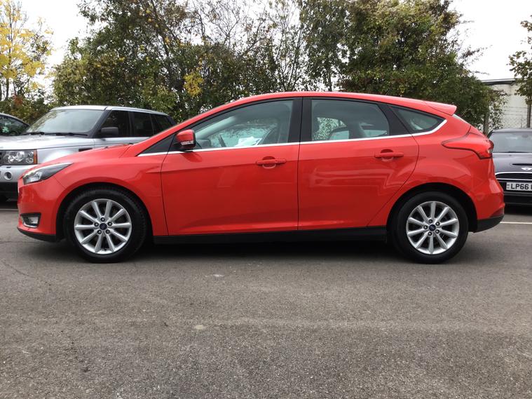 ** FULL FORD SERVICE HISTORY AND 2 KEYS **This 2018 Ford Focus 1.5T EcoBoost Titanium Hatchback with only 56318 miles is a reliable and efficient vehicle that is perfect for urban and suburban driving. Its 1.5-liter petrol engine is ULEZ compliant, making it an environmentally friendly choice, and with an MOT that expires on 28/02/2026, you can have peace of mind knowing it's roadworthy for years to come. This 5-door hatchback offers plenty of space with 5 seats, making it ideal for families or those in need of extra cargo room. The sleek design includes 16in Alloy Wheels, Chrome Finish on Upper Door Line, and a Chrome Finished Front Grille, giving it a modern and stylish look. Other features such as heated electric door mirrors, integrated side indicators, and locking wheel nuts add convenience and safety to your driving experience. With its Euro 6 (s/s) 150ps engine and automatic transmission, this Ford Focus delivers both power and smooth handling, making it a great choice for your next vehicle.