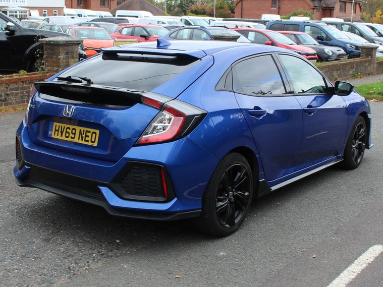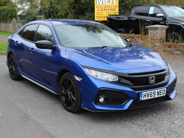 Presenting a sleek 2019 Honda Civic 1.0 VTEC Turbo Sport Line Hatchback with only 54900 miles on the clock, this ULEZ compliant beauty comes with a MOT valid until 29/09/2026. Sporting a stylish Hatchback design with 5 doors and 5 seats, this petrol manual Euro 6 (s/s) vehicle is perfect for your driving needs. The car boasts 17in Alloy Wheels - Dynamic Exclusive Black, Black Grille, and Black Door Mirrors with Integrated Indicator, adding to its allure. The Black Line Pack and Body Coloured Door Handles are also noteworthy. Don't miss out on this fantastic opportunity to drive away in a reliable and powerful Honda Civic., OPEN 7 DAYS A WEEK - A SELECTION OF UP TO 200 CARS AND VANS AVAILABLE. Click on dealer 'VISIT WEBSITE' link for many more large photographs of this car. We are a West Sussex Trading Standards Approved 'Buy with Confidence Dealership'.