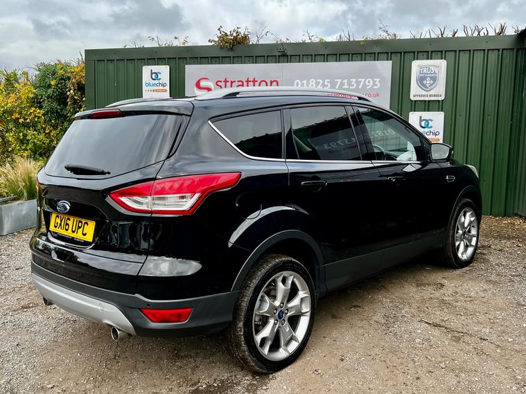 This 2016 Ford Kuga 2.0 TDCi Titanium X Sport SUV, with 108775 miles on the clock, is a robust and reliable diesel-powered vehicle that boasts impressive features. With 9 service stamps this Kuga will also come with a new MOT. It's a 5-seater, 5-door SUV is ULEZ compliant, making it the perfect choice for city driving. Equipped with a powerful 180 ps engine and a manual AWD Euro 6 transmission, this Kuga is designed for both performance and efficiency. The exterior is enhanced with 19in Alloy Wheels, while the body colour side skirts and front skirts add a sporty and sleek touch, with the addition of Electric Power Folding Mirrors, Electic Windows, Electric Tailgate, Front & Rear Parking Sensors and much more. This vehicle will undergo a complete and meticulous mechanical inspection which has the backing of a 3 month BLUECHIP extendable warranty. We must add at this juncture that the majority of our customers tend to extend to the 12 month all mechanical all electrical warranty at the extremely competitive price of just £399+ VAT. Full details can be viewed at dealer's website Offered for sale by Stratton car Company of Sussex A Family Run Business.