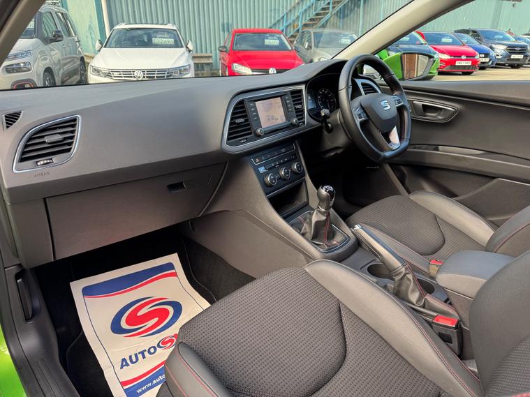 This 2015 SEAT Leon 1.4 TSI FR Black Technology Hatchback with 48254 miles on the clock is a sleek and stylish petrol vehicle that comes with a manual transmission and Euro 6 compliance, making it ULEZ compliant. With MOT expiring on 13/09/2026, this 5-door, 5-seat hatchback is a reliable and efficient choice for any driver. The car boasts features such as Bluetooth phone connection, Media System Plus, and 12 Volt Power Supply in Centre Console, making it a convenient and enjoyable drive. The 3.5in Drivers Display and Anti-Theft Roof Antenna further enhance the driving experience. Don't miss out on this contemporary and practical vehicle that combines performance with dealer's website delivery available.Part exchange welcome.AA extended warranty partner.AA standards approved dealership.Trading standards approved dealership.Autotrader highly rated dealership.