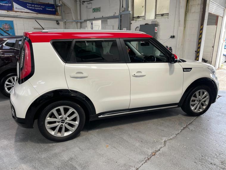 This 2018 Kia Soul 1.6 GDi 2 SUV with a manual transmission is a stylish and reliable car with 86000 miles on the clock. Finished in a sleek colour combination , this 5-door SUV has 5 seats and is perfect for family or group outings. It runs on petrol and is ULEZ compliant, making it an environmentally friendly choice for city driving. The MOT is valid until 08/04/2026, therefor we will put on a new MOT prior to collection giving you peace of mind for the future. Equipped with 17-inch alloy wheels and all-round electric windows with auto up-down function, this Kia Soul also features black high gloss A-pillars, chrome radiator grille, and black side sills for a modern and sporty look. With Euro 6 emissions standard and 130 bhp, this car offers both power and efficiency, making it a fantastic option for those in need of a spacious and reliable SUV. Great service history with 7 stamps in the book and along with anew MOT we will service the car also prior to handover. Drives as well as it looks. Recently taken in part exchange here with ourselves for a younger SUV. We have used the car for a few days to make sure all is working as it should with no clutch, engine faults etc. A very nice car all round in cracking condition both inside and out.