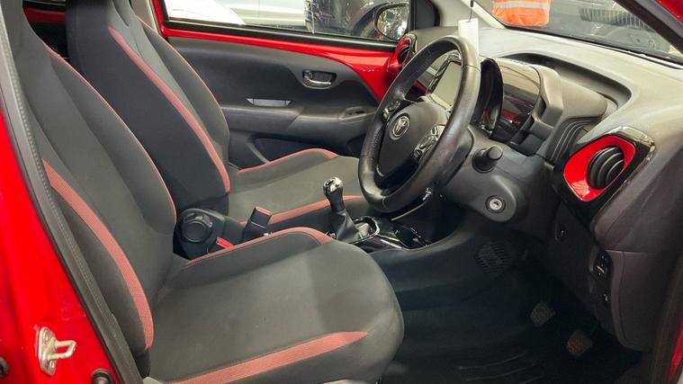 This 2018 Toyota Aygo 1.0 VVT-i x-cite 4 Red Bi-Tone Hatchback with only 28119 miles on the clock is a stylish and efficient choice for a small car. Powered by a petrol engine and with a manual transmission, this Euro 6 vehicle is ULEZ compliant and has an MOT that expires on 12/09/2026. With 4 seats and 5 doors, it offers practicality alongside its sporty looks. The exterior features 15in Alloy Wheels in Gloss Black, Gloss Black Door Mirrors, and Body Coloured Door Handles, giving it a modern and sleek appearance. Inside, the chrome details and electric front windows add a touch of sophistication. This hatchback is ideal for city driving and offers a great combination of economy and performance.