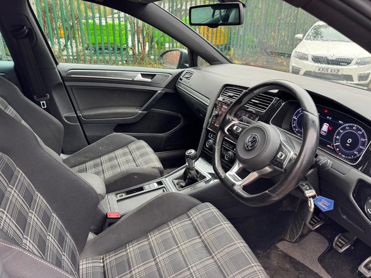 - gtd-specific radiator grille with black honeycomb structure painted with grey strips