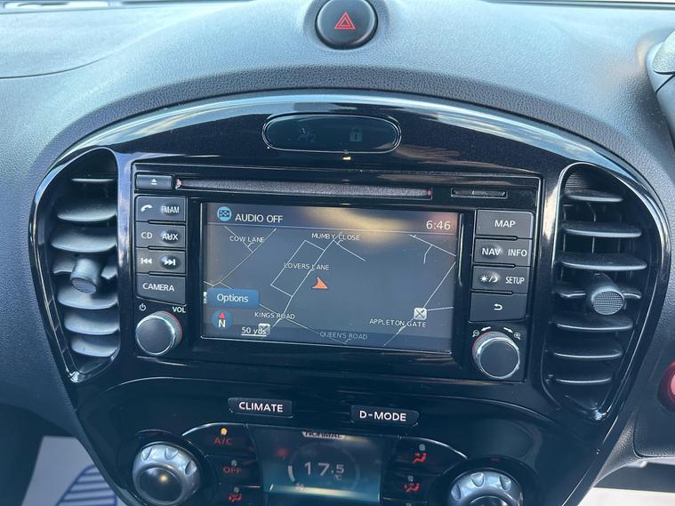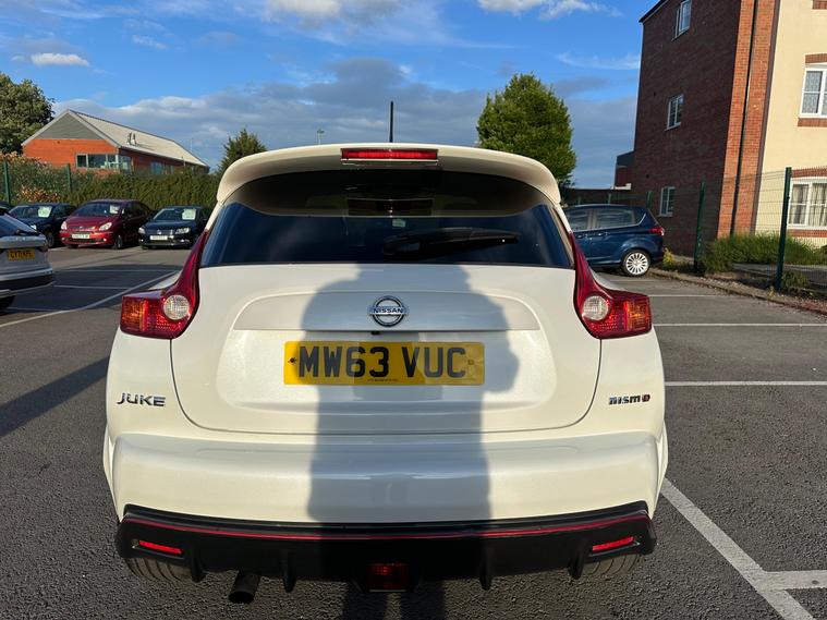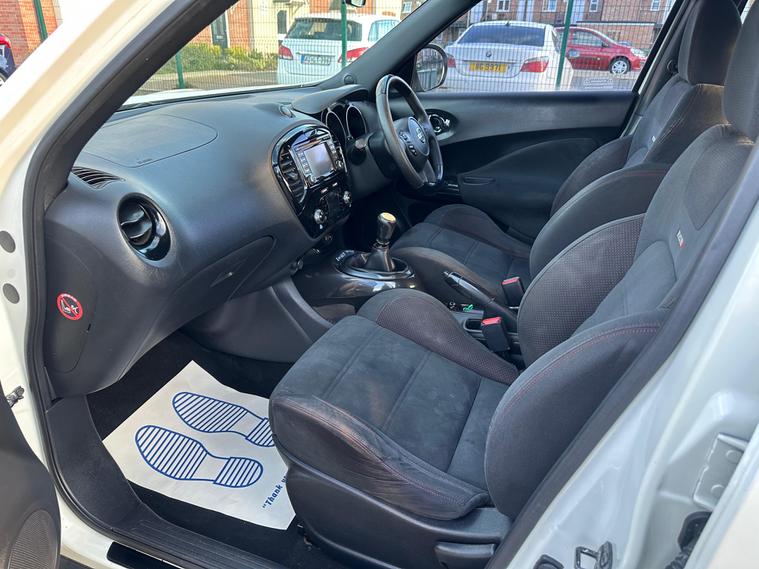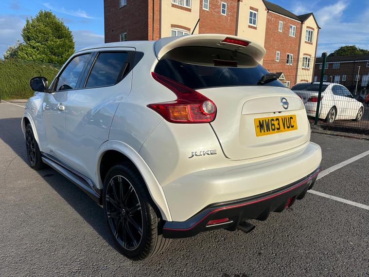 2013 Nissan Juke 1.6 Nismo - Sat Nav Heated Seats MOT Until May 2026 6 Months AA Warranty IncludedThis sporty 2013 Nissan Juke Nismo in pearl white is a bold and distinctive crossover, blending unique design with performance-inspired features and everyday practicality. With modern tech, heated sports seats, and striking Nismo styling, it's the perfect choice for drivers seeking something stylish, fun, and reliable.** Performance and Economy **Powered by a 1.6L petrol engine with manual transmission and sports suspension, the Juke Nismo delivers an engaging and dynamic drive. Its compact size makes it agile in the city, while cruise control and speed limiter add comfort on the motorway.** Features and Technology **Highlights include Nissan Connect satellite navigation with rear-view camera, Bluetooth connectivity with USB and AUX input, and heated front sports seats trimmed with Alcantara and leather. Automatic lights and wipers, electric folding heated mirrors, and climate control provide everyday convenience.** Comfort and Practicality **Inside, the Juke offers a driver-focused cockpit with push button start, intelligent key, sports pedals, and black headlining. Rear practicality is enhanced by a tonneau cover with underfloor storage, 60/40 split seats, and a spacious boot.** Safety and Security **Equipped with LED daytime running lights, multiple airbags, Isofix child seat mounts, ABS with brake assist, traction control, and electronic stability systems, the Juke provides peace of mind. Security features include remote central locking and immobiliser.** Ownership and Condition **Registered MW63 VUC and HPI clear, this Juke has been well maintained and remains in excellent condition throughout. It comes with all keys, original documentation, and a valid MOT until 5th May 2026, ensuring it's fully road-ready.** Included with Purchase **A 6 month AA warranty included, which can be extended12 month free AA breakdown cover£75 gift card toward your next MOT and serviceDrive away insurance available (T&Cs apply)Finance options available** Next Steps **This Nissan Juke Nismo is a fantastic choice and ready to drive away today. To book a test drive, request a personalised video walkaround, or reserve this car, call us on +44 7863 107747 or visit our website at dealer's website