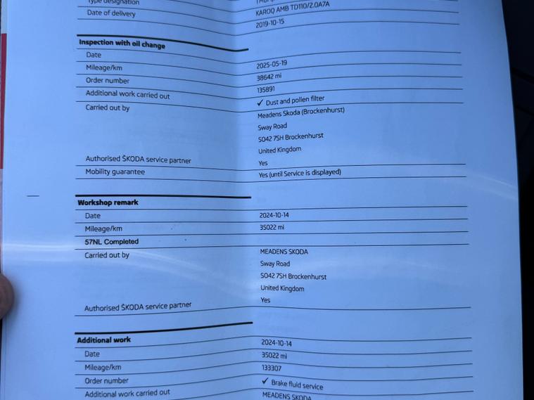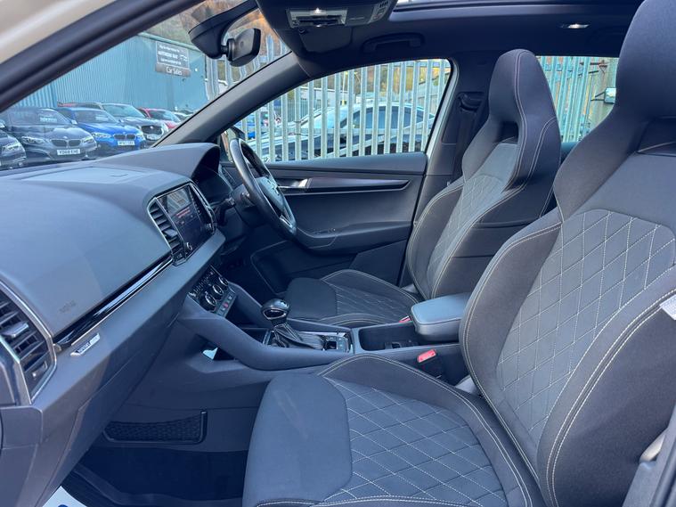 Available for purchase is a 2019 Skoda Karoq 2.0 TDI SportLine SUV with only 41267 miles on the clock. This 5-door, 5-seater diesel vehicle comes with a Diesel DSG 4WD Euro 6 (s/s) engine producing 150 ps. The MOT is valid until 14/10/2026 and it is ULEZ compliant, making it ideal for urban driving. This SUV includes features such as Amundsen Satellite Navigation with 8in Touchscreen Display Integrated Wifi, Bolero Radio, DAB Digital Radio, and Bluetooth, as well as SmartLink Plus. With its spacious and comfortable interior, this Skoda Karoq is the perfect option for those looking for a reliable and practical dealer's website delivery available.Part exchange welcome.AA extended warranty partner.AA approved dealership.Trading standards approved dealership.Autotrader highly rated dealership.