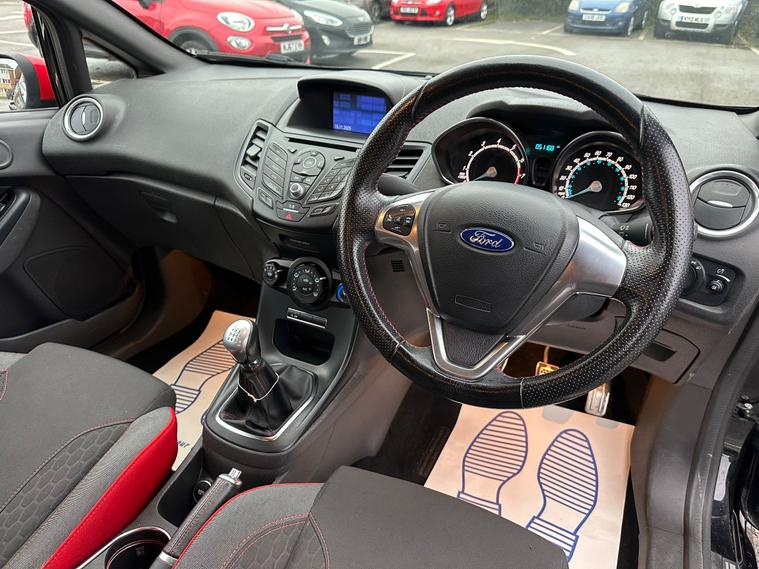 2017 Ford Fiesta 1.0T EcoBoost ST-Line Hatchback 5dr Petrol Manual Euro 6 (125 ps) Full Service History 4 New Michelin Tyres Long MOT no advisories 6 Months AA Warranty IncludedThe 2017 Ford Fiesta ST-Line is a sporty yet practical hatchback that blends sharp looks with excellent fuel efficiency and agile handling. Perfect for commuters or first-time drivers, it offers a refined drive and stylish design that stands out in any setting. ULEZ compliant for city use.Performance and EconomyPowered by Ford's reliable 1.0-litre EcoBoost engine producing 125 ps, this Fiesta delivers lively performance with impressive fuel efficiency. The manual gearbox provides responsive control, while sports suspension ensures excellent cornering and stability.Features and TechnologyEquipped with Ford DAB Radio and SYNC connectivity, Quickclear heated windscreen, halogen projector headlights with LED daytime running lights, 17in Rock Metallic alloy wheels, sports suspension, MyKey system, and a leather-trimmed ST-Line steering wheel. Electrically operated and heated mirrors, air conditioning, and illuminated footwells enhance both style and dealer's website and PracticalityInside, you'll find supportive sports seats, a modern dashboard layout, and smart storage solutions throughout. With split-folding rear seats, adjustable driving position, and a surprisingly roomy boot, it's ideal for daily use and weekend trips alike.Safety and SecuritySafety features include ESP with hill start assist, double locking, perimeter alarm, intelligent protection system, emergency brake warning lights, tyre pressure monitoring, and Ford Easy Fuel capless refuelling system for added convenience and peace of mind.Ownership and ConditionPresented in excellent condition throughout, this Fiesta comes with a full service history and a FULL MOT valid until November 2026. It has four brand new Michelin tyres recently fitted, ensuring smooth and safe performance on the road.AA Benefit and WarrantyA 6-month AA warranty included, which can be extended12-month free AA breakdown cover£75 gift card toward your next MOT and serviceDrive away insurance available (T&Cs apply)Finance options availableNext StepsThis Ford Fiesta ST-Line is a fantastic choice and ready to drive away today. To book a test drive, request a personalised video walkaround, or reserve this car, call us on +44 7863 107747 or visit our website at dealer's website