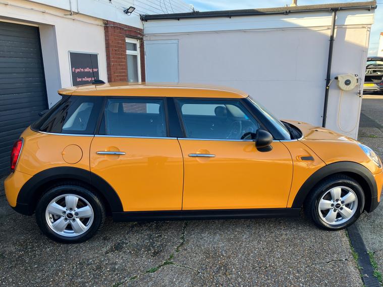 An Exceptional MINI Cooper One 1.2 5 Dr (6) Petrol Euro 6 (s/s) (102 ps), with only 28, 800 Miles from new. Finished in the stunning colour Volcanic orange, the vibrant paint finish is simply stunning with a deep lustrous polished dealer's website with a Luxury Premium Trim that is in Pristine condition. Its sporty looks hosts a features including Visual Boost Radio, Air Con, Sporty Bumpers & 17'' Track Alloys. The Mini is a fun car with bundles of charisma & now widely regarded as one of the most significant cars ever, this truly remarkable example is guaranteed to delight Mini Enthusiasts.,