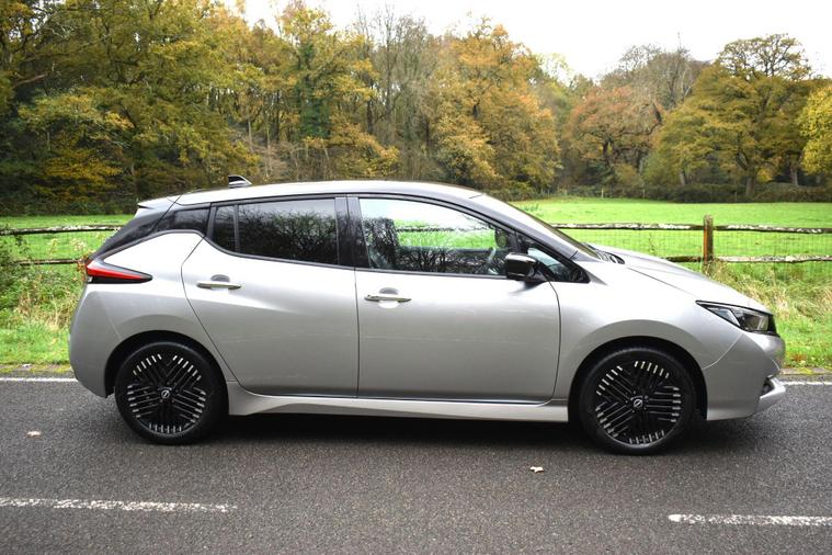 This 2023 Nissan Leaf N Connecta presents an exceptional ownership proposition with its remarkably low mileage of just 8895 miles, a testament to its careful use by its single owner. As an electric vehicle, it offers a smooth and quiet driving experience, powered by a 41 kWh battery that provides a maximum range of 168 miles when new. Recharging at home with a 7kW charger takes approximately 7 hours and 30 minutes, while rapid charging on the go can take you from empty to 80% in just 1 hour and 20 minutes. This N Connecta trim level comes equipped with desirable features such as Intelligent Key with Keyless Entry and a Start Push Button, alongside the Heat Pack which includes heated seats and a heated steering wheel for enhanced comfort.Further enhancing your journey are the Intelligent Auto Headlights that adjust automatically, and the convenience of Bluetooth with Audio Streaming. Safety is also a priority, with Blind Spot Intervention providing an extra layer of awareness. The Nissan Leaf is renowned for its practicality, boasting a large boot space perfect for shopping trips or luggage. These combined attributes, including its efficient electric powertrain, generous range, and advanced features, position this particular Nissan Leaf as a compelling choice for those seeking a well maintained and feature rich electric car.Finished in Silver with a black roof and half black leather/cloth interior, one owner from new, 17'' alloy wheels, front and rear parking sensors, front and rear parking sensors, privacy glass, electric folding mirrors, heated steering wheel, heated front seats, automatic, full Nissan service history, keyless start, cruise control, reverse camera with guidelines, air con, sat nav, DAB radio, Bluetooth, HPI clear, finance available with this vehicle.... for further information please contact us on 01483334205.