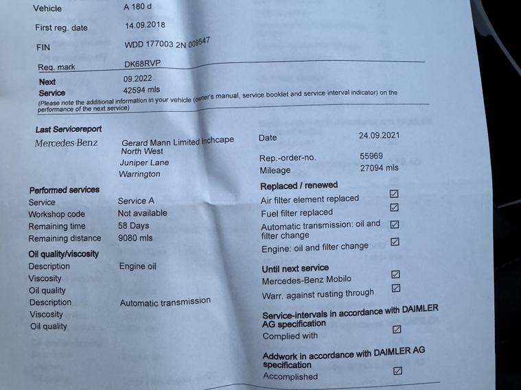 This 2018 Mercedes-Benz A Class 1.5 A180d AMG Line (Premium) Hatchback with 74664 miles on the clock is a stylish and efficient Diesel vehicle that is ULEZ compliant, making it perfect for city driving. With MOT expiring on 15/11/2026, this 5-door hatchback comes with 5 seats, making it ideal for families or those who frequently carpool. The car boasts 18in Alloy Wheels, AMG Bodystyling, and Chrome Beltline Strips, giving it a sporty and modern look. Under the hood, the 116 ps engine is equipped with a 7G-DCT Euro 6 (s/s) transmission, providing a smooth and responsive driving experience. With its sleek design and reliable performance, this Mercedes-Benz A Class is a fantastic choice for anyone in need of a practical and stylish dealer's website delivery available.Part exchange welcome.AA extended warranty partner.AA standards approved dealership.Trading standards approved dealership.Autotrader highly rated dealership.