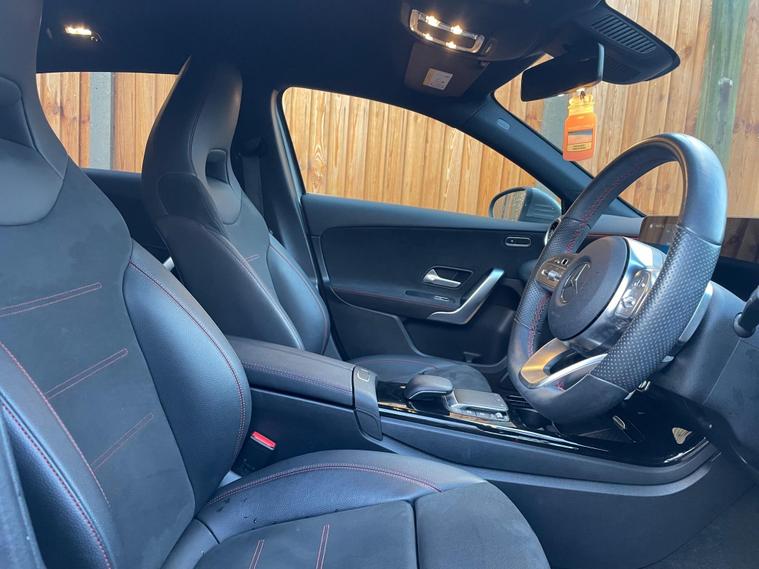 This petite ULEZ compliant Mercedes-Benz A Class 1.3 A180 AMG Line (Executive) 7G-DCT Euro 6 (s/s) 5dr is supported by a full dealership's service history. It looks stunning in a unique stylish metallic Grey, and the leather trim adds a sophisticated touch. Standout with this statement ride which includes these fantastic features: Display screen with a Mercedes professional media package inclusive of its famous navigation system, iDrive controller, On Board Computer, climate control, 18'' alloy wheels, parking sensors, camera, cruise control, speakers, heated Seats, and lots more. We really go the extra mile to ensure the quality and safety of all our cars. It has been subjected to an ultra fussy mechanical & electrical inspection, including a health check of all electronic control systems & removal of the vehicle wheels to strip down, clean and adjust the brakes. Manufacturer approved Tunap products have been used in the cars preparation, including, a fuel system cleaner designed to reduce emissions and improve fuel consumption. Forecourt valet using the finest products has been meticulously carried out. We hope this description demonstrates the attention to detail that ensures this Mercedes, like all our cars are of a consistently high quality. Specialist routine servicing and aftercare backup is on hand should you require it. We also offer FREE 12 Months Warranty on your car as well as FREE 1 Year AA breakdown cover. (Terms and conditions apply) We ensure all our cars are HPI checked and have a minimum of 6 months valid MOT. All future services done with us are 30% off! Call 01992692402 to book in for a viewing and test drive or send us a message and we will get back to you swiftly.