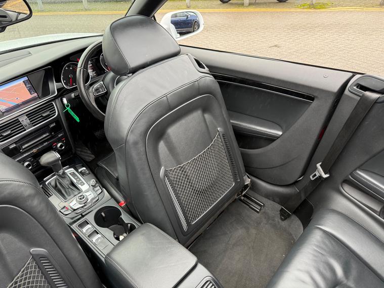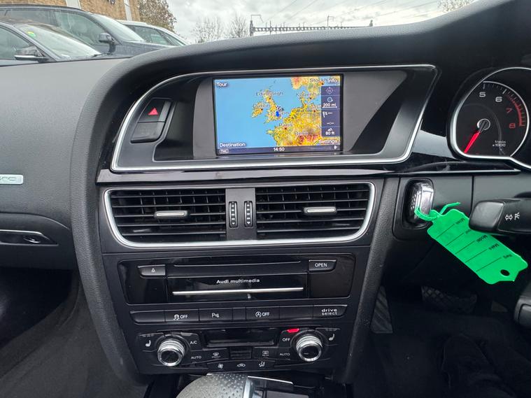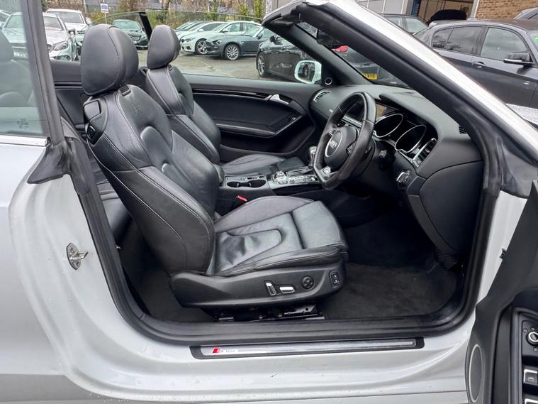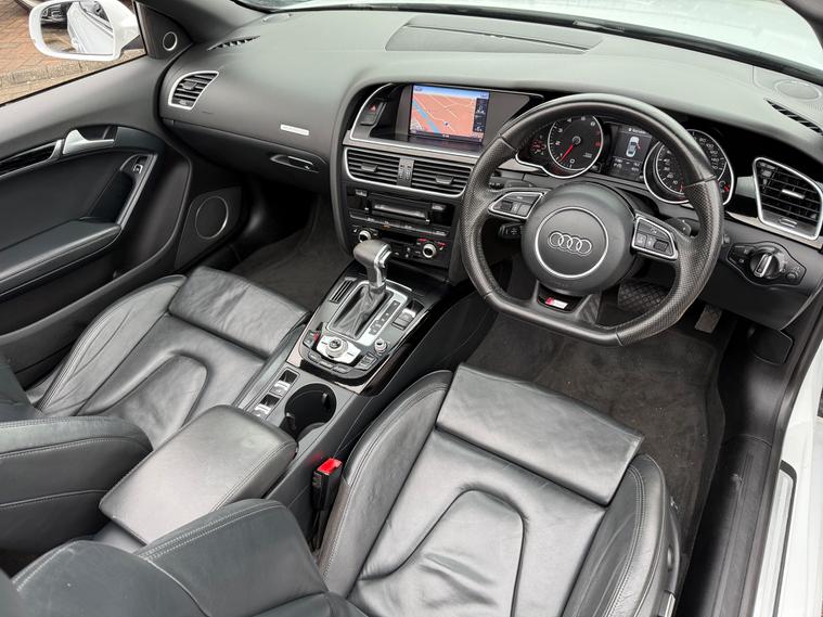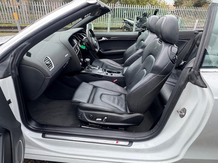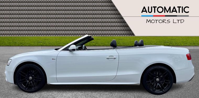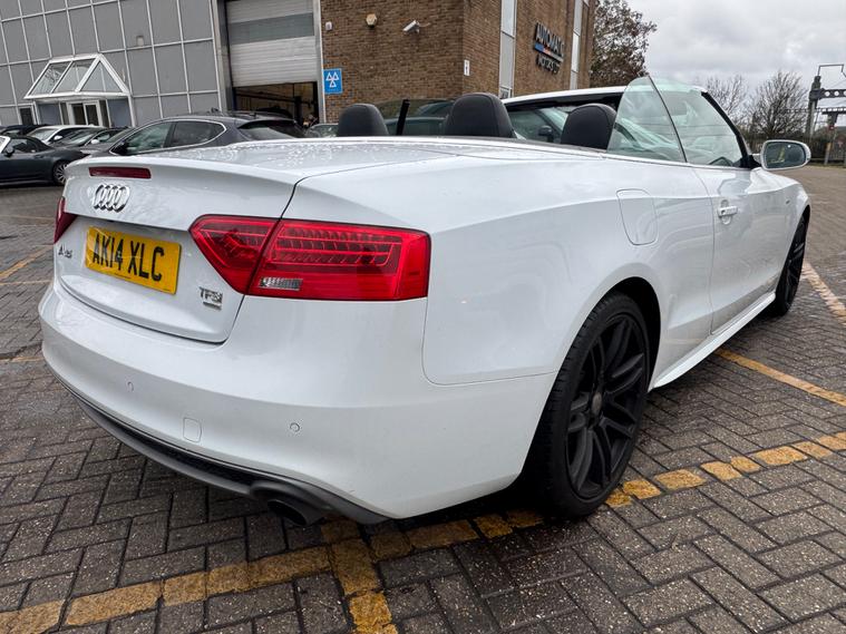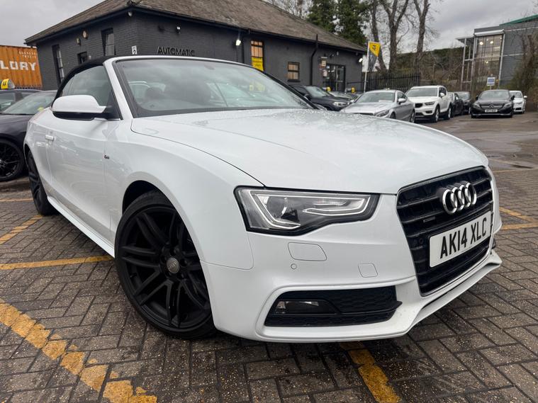 2 KEYS, ULEZ FREE, FRESH SERVICE, MOT 06/05/2025, NAVIGATION, BLUETOOTH, PARKING SENSORS, LEATHER SEATS, 2 FORMER KEEPERSThis sleek 2014 Audi A5 Cabriolet boasts just 71100 miles on the clock and is the perfect choice for a stylish, open-top drive. Powered by a 2.0 TFSI S line Special Edition Convertible 2dr Petrol S Tronic quattro Euro 6 (s/s) engine, this car is not only powerful with 225 ps, but also fuel-efficient. With its MOT expiring on 06/05/2026 and ULEZ compliance, it offers peace of mind for city driving. This 2-door convertible has 4 seats, making it ideal for both solo trips and small group outings. Its features include 12V Power Socket, AMI - Audi Music Interface, AUX-IN Socket, Bang and Olufsen Sound System, and Concert Radio, ensuring a comfortable and enjoyable ride every time. Don't miss out on the chance to own this exquisite Audi A5 Cabriolet.