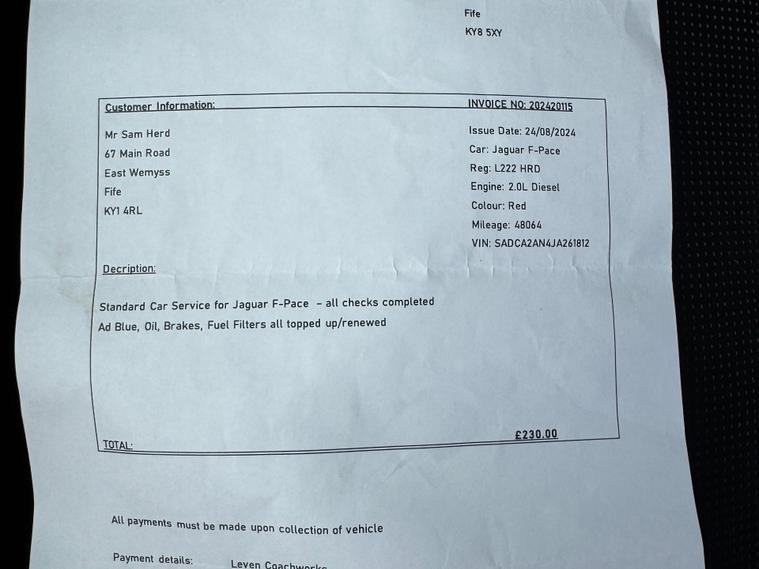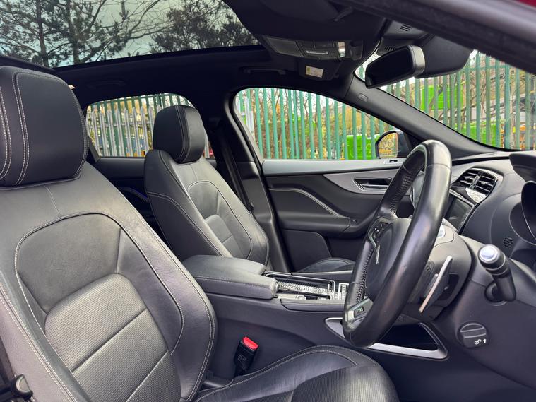 This 2017 Jaguar F-Pace 2.0 D180 R-Sport SUV with 53020 miles on the clock is a stylish, powerful and efficient diesel vehicle that will not disappoint. With 5 seats and 5 doors, this SUV is perfect for family adventures or daily commutes. The MOT doesn't expire until 31/08/2026, and it is ULEZ compliant, making it ideal for city driving. The Euro 6 engine with 180 ps provides smooth and responsive performance, while the automatic all-wheel-drive system ensures a safe and confident drive in any conditions. Featuring 19in Alloy Wheels, Electric Front and Rear Windows, and Body Coloured Door Mirrors, this Jaguar F-Pace offers both style and practicality, making it a great choice for anyone in need of a reliable and luxurious dealer's website delivery available.Part exchange welcome.AA extended warranty partner.AA standards approved dealership.Trading standards approved dealership.Autotrader highly rated dealership.