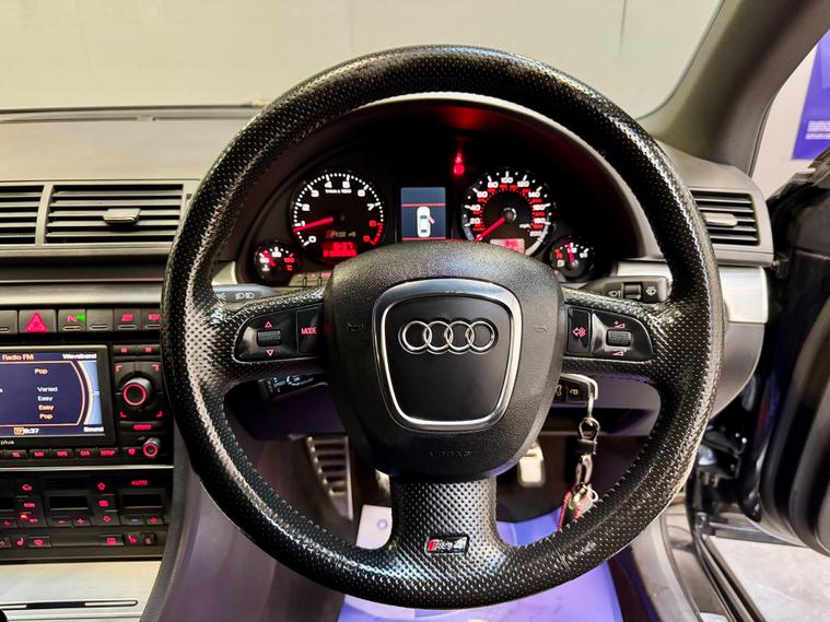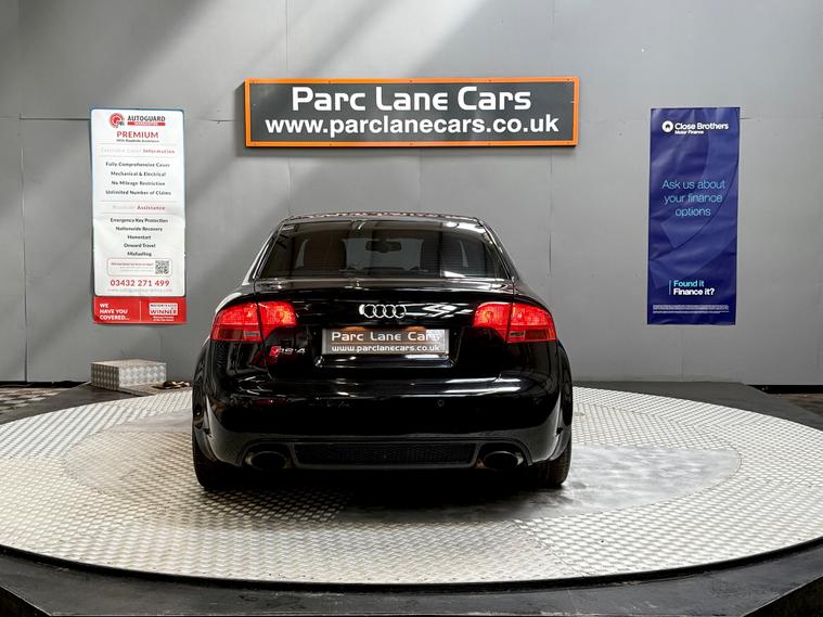 Audi RS4 4.2 V8 Quattro for Sale Parc Lane Cars GosforthParc Lane Cars of Gosforth present this outstanding Audi RS4 4.2 V8 Quattro, finished in Phantom Black Pearl with black Vienna leather Recaro interior. This is a rare opportunity to acquire a low-mileage performance icon in superb condition.This Audi RS4 has covered just 49, 000 miles and comes with a comprehensive and well-documented service history, demonstrating careful maintenance by Audi main dealers and recognised dealer's website Service History Record 05/09/2007 - 3, 654 miles - Audi 13/01/2010 - 10, 331 miles - Audi 22/09/2011 - 16, 695 miles - London VW 04/09/2013 - 19, 086 miles - Audi 17/11/2015 - 22, 951 miles - Audi 01/03/2017 - 24, 149 miles - Audi 19/09/2018 - 24, 723 miles - Audi 13/09/2019 - 29, 082 miles - Audi 28/08/2021 - 34, 861 miles - AudiSupplied with 2 remote keys.Factory-Fitted Specification Electric Recaro sports seats GSM mobile phone preparation with armrest 6-CD autochanger Automatically opening boot lid Rear side airbags Auto-dimming rear-view mirror ISOFIX child seat preparation Matt aluminium interior inlays A high-quality and well-presented interior throughoutPerformance & ConditionPowered by Audi's renowned 4.2-litre naturally aspirated V8, producing over 400 BHP, this RS4 delivers thrilling performance combined with quattro all-wheel-drive traction for confidence in all driving conditions.Highlights include: Ultra low mileage example Phantom Black finish in superb condition Immaculate leather interior Enthusiast-owned provenanceA modern Audi performance classic that is increasingly difficult to find in such exceptional condition.This Audi RS4 Quattro is a superb example and an opportunity not to be missed.Key Details Model: Audi RS4 4.2 V8 Quattro Mileage: 49, 000 miles Fuel Type: Petrol Transmission: Manual Drive Type: Quattro AWD Registration: EK06 ZRR Location: Parc Lane Cars, Gosforth - Newcastle upon Tyne Service History: Comprehensive Audi and specialist recordsFinance & Part Exchange Parc Lane Cars GosforthFinance is available, and part exchange is welcome. Tailored finance packages can be arranged to suit your needs.Contact Parc Lane Cars Gosforth today to arrange a viewing or test drive of this exceptional low mileage Audi RS4.Examples of this quality, mileage and provenance are highly sought after.LISTED SPECIFICATION IS SHOWN AS ACCURATELY AS POSSIBLE. ERRORS MAY OCCUR. PLEASE ASK US TO CLARIFY IF YOU HAVE ANY QUERIES.Reg - EK06ZRR