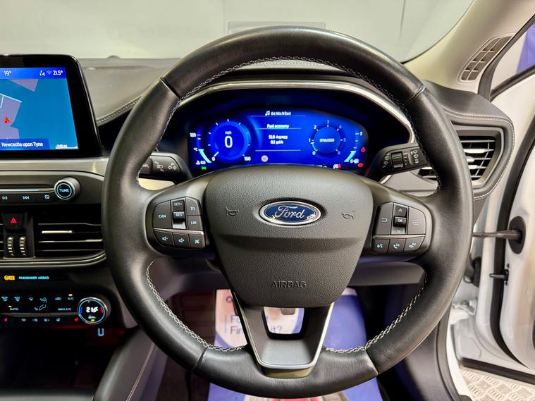 Ford Focus Active X Vignale - Frozen White Low Mileage Panoramic Roof Parc Lane Cars GosforthParc Lane Cars of Gosforth are delighted to present this beautiful Ford Focus Active X Vignale Edition, finished in Frozen White with premium Vignale Ebony perforated leather upholstery with white stitching. Combining luxury, versatility, and refinement, this top-spec model offers a raised driving position, panoramic roof, and sophisticated interior features.Mileage & Service HistoryHaving covered only 41, 782 miles, this Focus Active X Vignale has been carefully maintained with a comprehensive owner-recorded service history: 23/04/2022 - 9, 522 miles - Owner serviced and recorded 18/03/2023 - 19, 208 miles - Owner serviced and recorded 20/04/2024 - 30, 002 miles - Owner serviced and recordedFeatures & Specification 1.5L Diesel engine - 6-speed manual Large panoramic roof with tilt & slide function Electronic digital dashboard Infotainment system with satellite navigation Auto stop/start function Selectable drive modes: Eco, Sport, Slippery, Trail Heads-Up Display (HUD) Self-parking system Electric tailgate Heated front seats and heated steering wheel Cruise control & climate control Premium Vignale leather interiorPerformance & ConditionThe Ford Focus Active X Vignale delivers a refined, efficient, and comfortable driving experience. Its diesel engine offers strong performance and excellent fuel economy, while the raised ride height, adaptive drive modes, and panoramic roof make it ideal for both urban driving and countryside journeys. The premium interior, heated seating, and sophisticated technology enhance comfort and luxury.Key Details Model: Ford Focus Active X Vignale Colour: Frozen White Mileage: 41, 782 miles Transmission: 6-speed manual Fuel Type: Diesel Registration: DK70 NZG Location: Parc Lane Cars, Gosforth, Newcastle upon TyneFinance & Part ExchangeFlexible finance options are available, and part exchange is welcome. Contact Parc Lane Cars Gosforth today to arrange a viewing or test drive of this low-mileage, high-spec Ford Focus Active X Vignale.This example is beautifully presented, luxurious, and not to be missed.LISTED SPECIFICATION IS SHOWN AS ACCURATELY AS POSSIBLE. ERRORS MAY OCCUR. PLEASE ASK US TO CLARIFY IF YOU HAVE ANY QUERIES.
