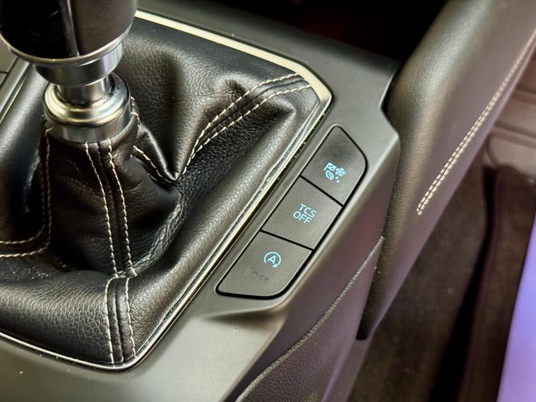 - gear lever gaiter ring with blue stitching
