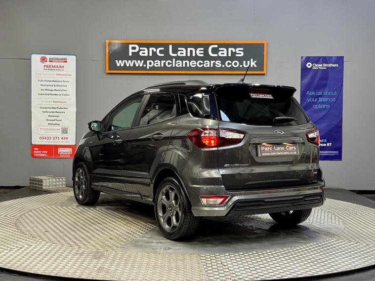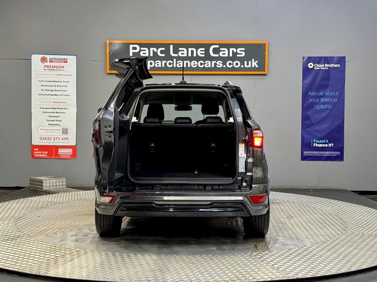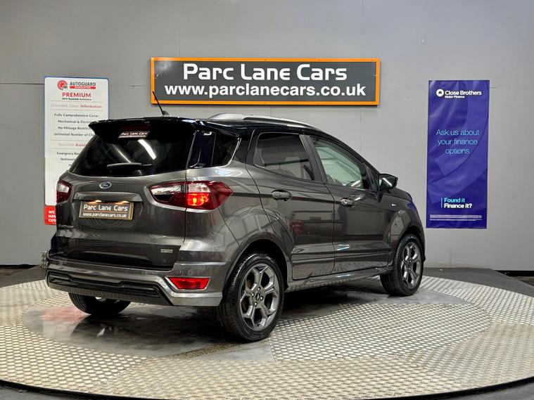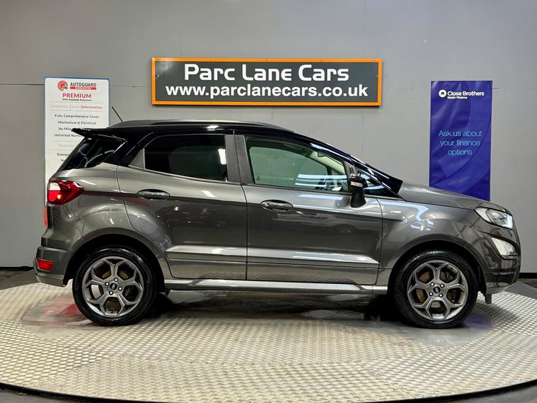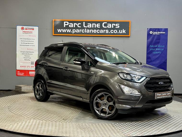Ford EcoSport ST-Line T EcoBoost - Magnetic Grey 86, 496 Miles Parc Lane Cars GosforthParc Lane Cars of Gosforth proudly present this Ford EcoSport ST-Line T EcoBoost, finished in Magnetic Grey with part leather black interior trim. A stylish, practical, and economical compact SUV, perfect for city driving, commuting, or family use in Newcastle and the surrounding areas.Mileage & Service HistoryThis Ford EcoSport has covered 86, 496 miles and comes with a comprehensive service history, maintained at the following intervals: 17/09/2020 - 12, 261 miles 25/01/2022 - 20, 659 miles 06/10/2022 - 24, 675 miles 25/07/2023 - 39, 560 miles 23/05/2024 - 52, 646 milesFeatures & Specification 1.0T EcoBoost petrol engine - 6-speed manual Air Conditioning Auto Climate Control Auto Wipers Bluetooth Connectivity Cruise Control DAB Radio Satellite Navigation Rear Parking SensorsPerformance & ConditionThe Ford EcoSport ST-Line delivers a refined and efficient driving experience with excellent handling and comfort. Its compact SUV design makes it ideal for urban driving while providing practicality and versatility for longer journeys. Finished in Magnetic Grey with part leather black interior trim, this example is a stylish and well-maintained compact SUV.Key Details Model: Ford EcoSport ST-Line T EcoBoost Colour: Magnetic Grey Mileage: 86, 496 miles Transmission: 6-speed manual Fuel Type: Petrol Interior: Part leather black Registration: EN68 GUJ Location: Parc Lane Cars, Gosforth, Newcastle upon TyneFinance & Part ExchangeFlexible finance options are available, and part exchange is welcome. Contact Parc Lane Cars Gosforth today to arrange a viewing or test drive of this low-mileage, stylish, and well-maintained Ford EcoSport ST-Line.A practical, economical, and premium compact SUV that is not to be missed.LISTED SPECIFICATION IS SHOWN AS ACCURATELY AS POSSIBLE. ERRORS MAY OCCUR. PLEASE ASK US TO CLARIFY IF YOU HAVE ANY QUERIES.