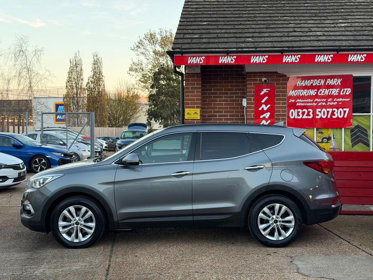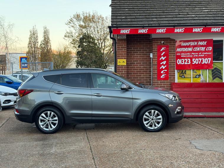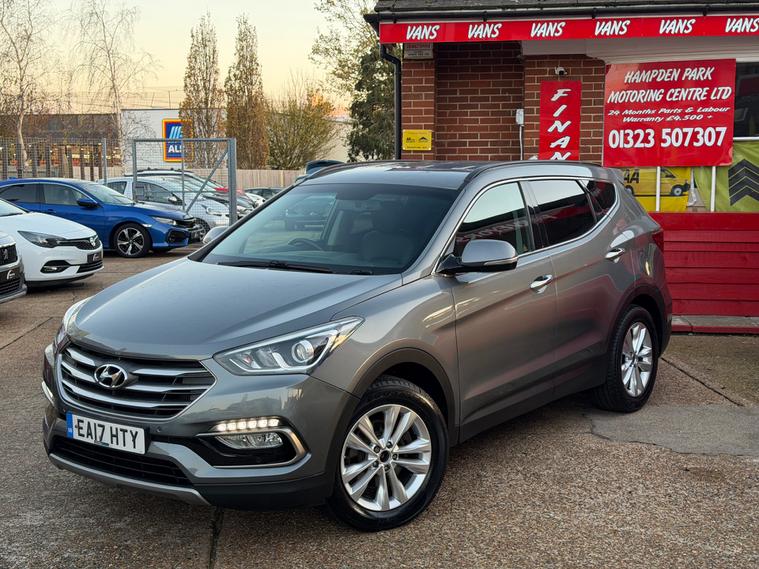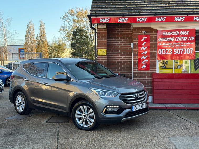 24 MonthPARTS & LABOUR WARRANTY. Hampden Park Motoring Centre is pleased to be offering this ULEZ compliant 2017 Hyundai Santa Fe 2.2 CRDi Blue Drive Premium SUVfor sale, with ONLY ONE OWNER FROM NEW and 79, 200 miles. This car comes with FULL MAIN SERVICE HISTORY. The car will leave with an interim service, a new MOT and a PDI. Finished in Platinum silver with Black leather trim.**WHY BUY FROM US****Established In 1980****24 Month Warranty OnAll Cars Over £4500, &Those Not Covered By A Manufactures Warranty****All Our Cars Are Hpi ClearSo You Can Buy WithConfidence****Competitive Finance Rates Subject To Status****Multi Branches****Open 7 Days a Week Inc Bank Holidays****Monday - Friday - 8.30am to 6pm****Saturday - 9.00am to 5pm****Sunday - 10am to 4pm****Bank holidays 10am to 4pm**For more pictures and a walk around videoplease go to https:/ dealer's website call to arrange viewing and a test drive on 01323300238.Here at Hampden Park Motoring Centre, we have up to 50 carson show, also at our Hailsham branch we have up to 50 further cars available for viewing, please call 01323300238 for more info.For more information on our Santa Fe please see the benefits below as stated,