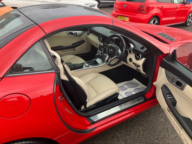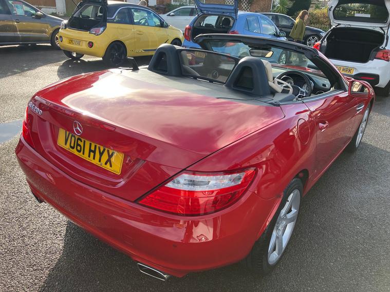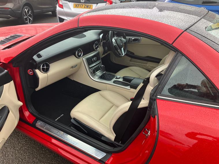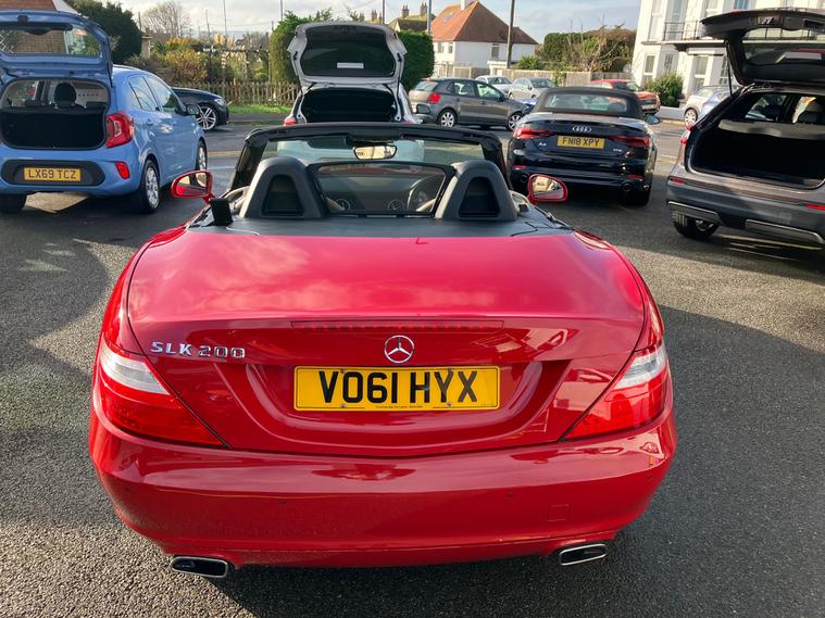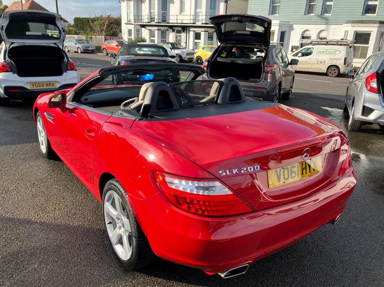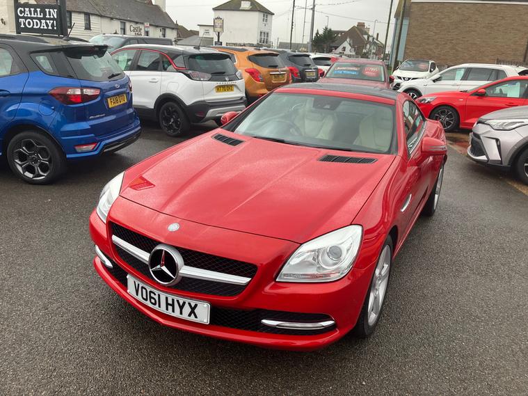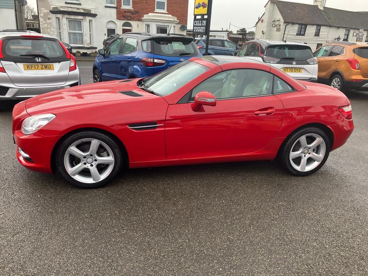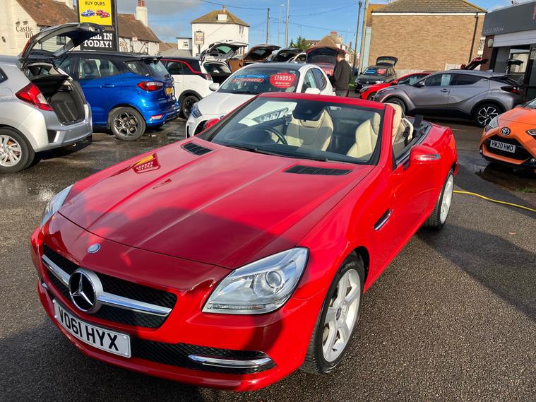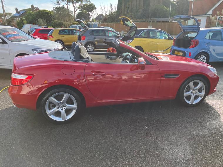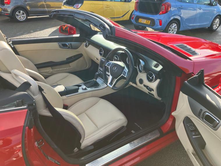 An Amazing Elegant Mercedes-Benz 200 BlueEfficiency Edition (125) Convertible 1.8 Petrol G-Tronic with just 31, 500 miles and Full service history.This exquisite, cherished Mercedes-Benz SL finished in gleaming Feueropal Mars Red looks absolutely stunning attracting admiring comments constantly. The factory original paintwork has an incredible lustrous shine thanks to garage storage when not on pleasure usage.High quality materials and first class workmanship can be felt in every feature from the unworn multi-contoured seats finished in optional light tan leather trim to the seamless operation of the electric roof. Meticulous care and pride can be seen immediately with spotlessly clean Mercedes-Benz cream carpet floor mats.The smoothness and refinement is glorious and suits both leisurely and eager drivers alike. The Seven speed Semi- Auto optimised automatic transmission adapts to the driver and is seamless.All service records with accompanying invoices are neatly filed chronically with MOT certificates leaving no doubt to the desirable low mileage covered.To combine a beautifully original car with an impeccable service history is most sought after amongst discerning buyers, and this example without any doubt being one of the best in existence, will not fail to impress here. ,