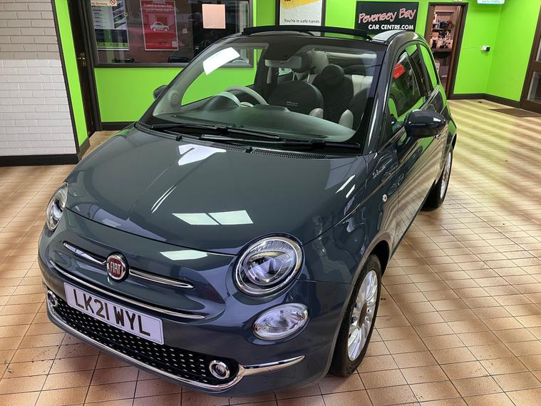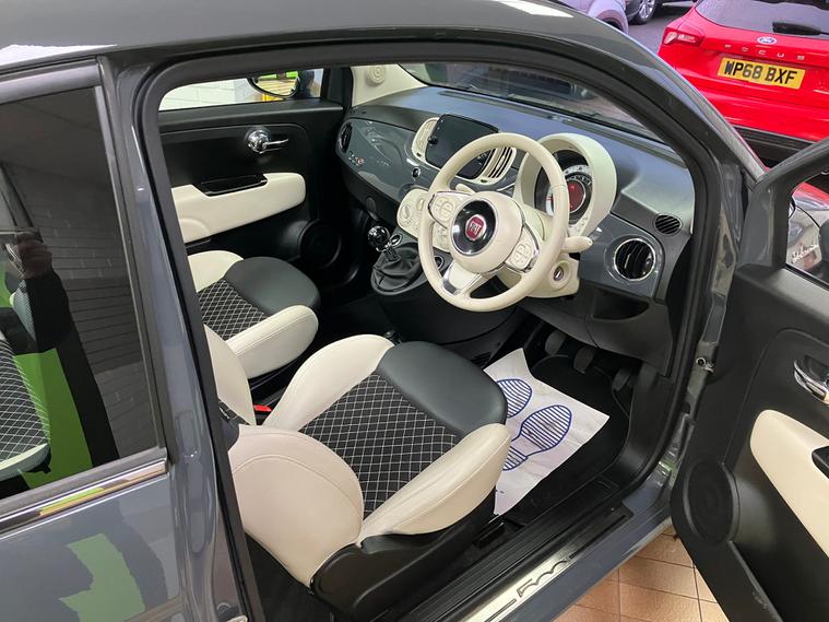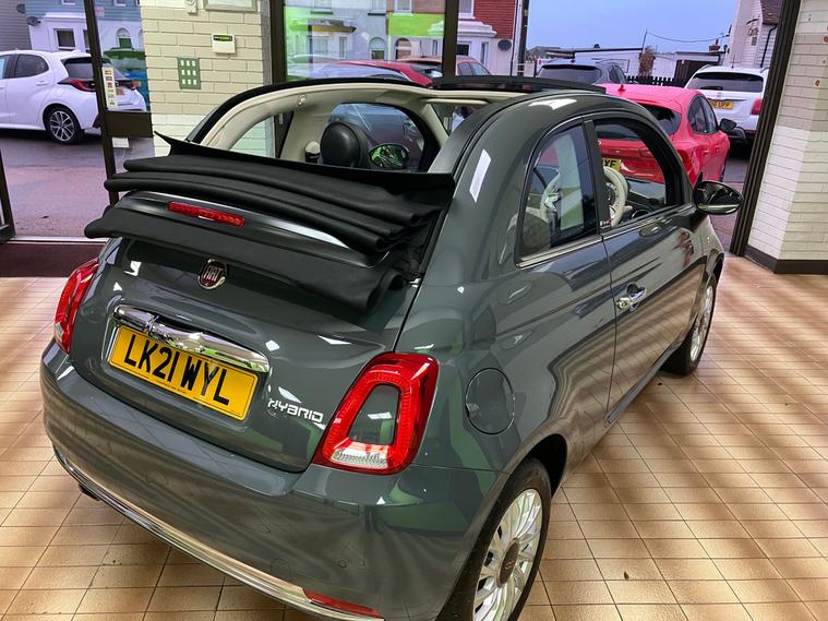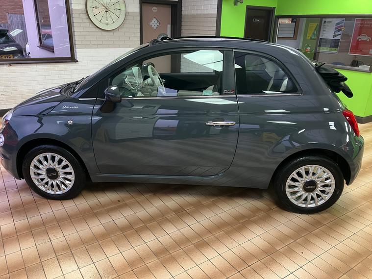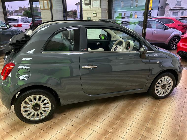 Now in the Showroom a Gorgeous Fiat 500 Dolcevita 1.0 MHEV Convertible 2dr Petrol Manual Euro 6 (s/s) (70 bhp). With just the One Owner from new and only a mere 9, 600 Miles. Finished in the distinguished colour of Tech House Grey this Mild hybrid, 2-door convertible city car offers a blend of iconic styling, and is complimented with a power-operated fabric cabrio roof.Pristine condition , the vehicle is totally fabulous and certainly Stands out from the crowd.The Dolcevita trim level of the Fiat 500C MHEV comes well-equipped with modern technology and classic styling cues. The cabin includes a 7-inch touchscreen infotainment system with DAB radio, Bluetooth, Apple CarPlay, and Android Auto connectivity. Other features typically include automatic climate control, cruise control, Fabric/Techno Black/Ivory Leather upholstery , Techno Leather steering wheel with audio controls.Those seeking an example close to perfect will be delighted as this fine example is stunning in every conceivable respect.,
