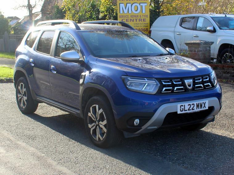 This 2022 Dacia Duster 1.3 TCe Prestige SUV has only 17800 miles on the clock and runs on petrol, making it ULEZ compliant. With an MOT that expires on 29/06/2026, this 5-door SUV offers 5 seats and comes equipped with features such as cloth interior in black with grey stitching, a spare wheel, 17in alloy wheels, and an acoustic windshield. The Iron Blue exterior adds a touch of style to this powerful vehicle, which boasts a 130 ps engine and a manual transmission. Ideal for families or those who appreciate extra space and versatility, this SUV is ready to hit the road with confidence and convenience., OPEN 7 DAYS A WEEK - A SELECTION OF UP TO 200 CARS AND VANS AVAILABLE. Click on dealer 'VISIT WEBSITE' link for many more large photographs of this car. We are a West Sussex Trading Standards Approved 'Buy with Confidence Dealership'.